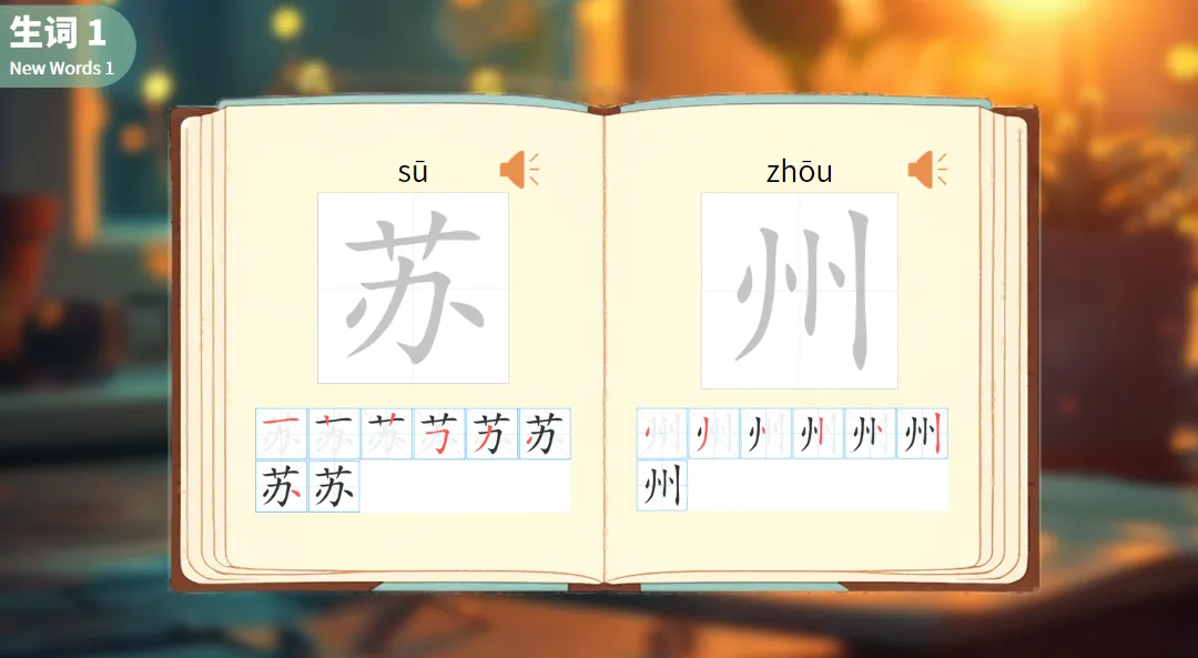 例如,在“苏”和“州”的学习中,不仅展示了汉字的书写,还通过重复和变式练习,加深学生的记忆。