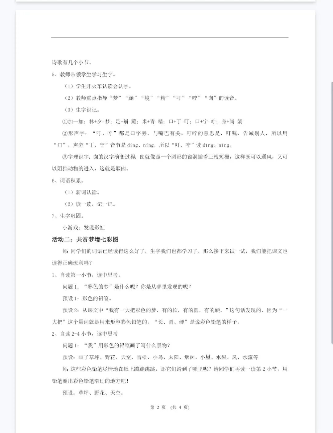 【新课标精品课件】二下年级下《4.8彩色的梦》第一课时课件+教案