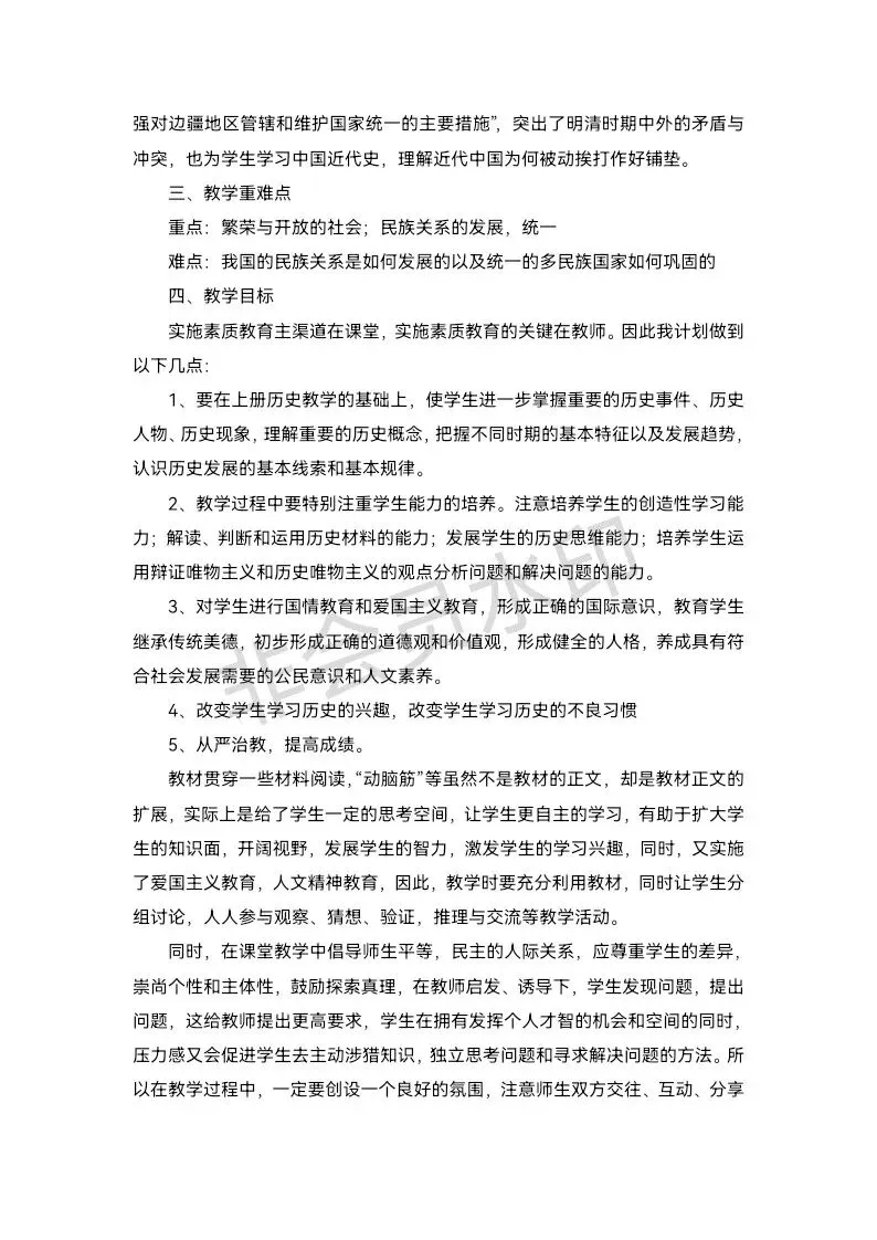 七年级历史下册教学计划教案