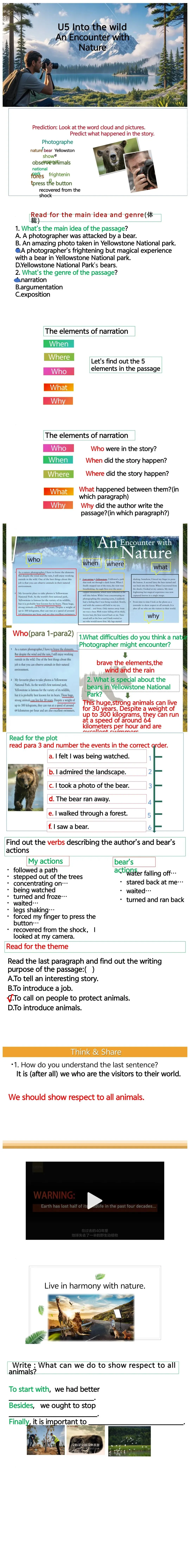 >【PPT课件分享】高中英语 Unit 5 Into the wild Developing ideas An Encounter with nature (全国通用版)