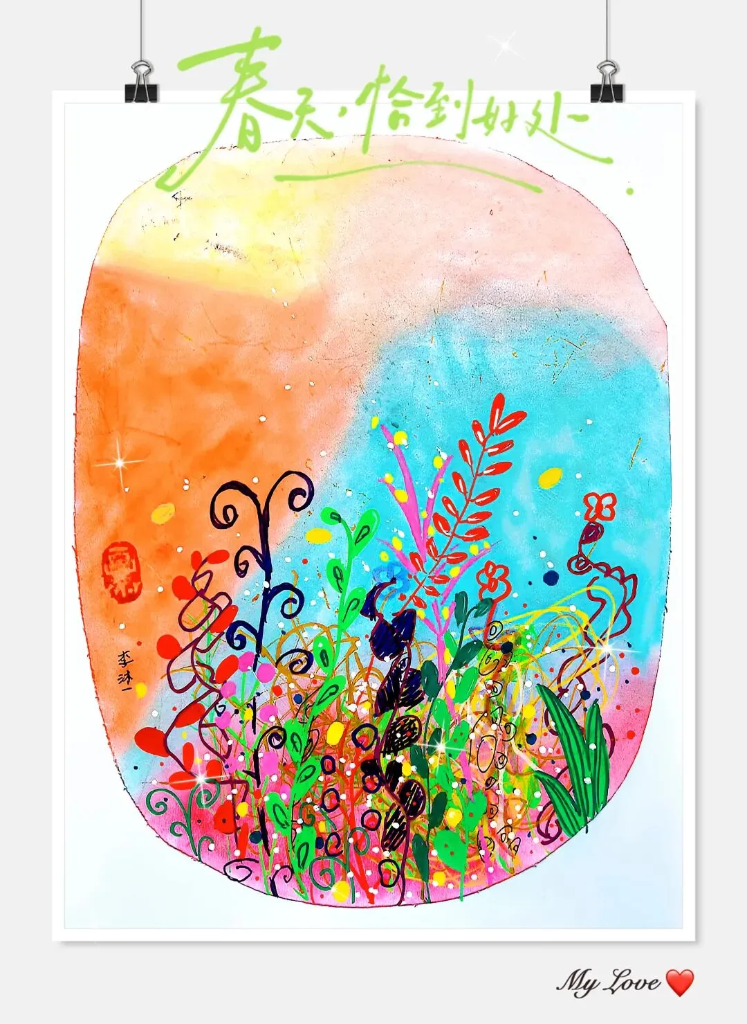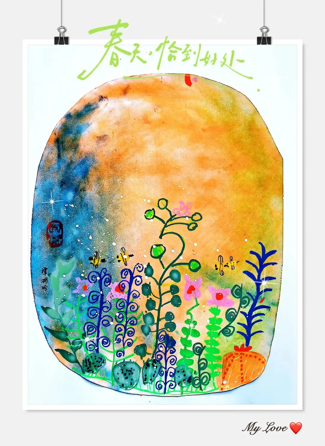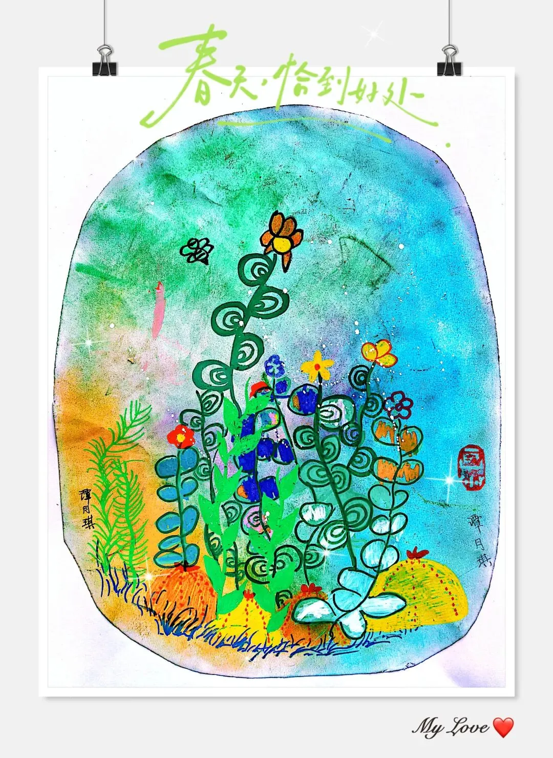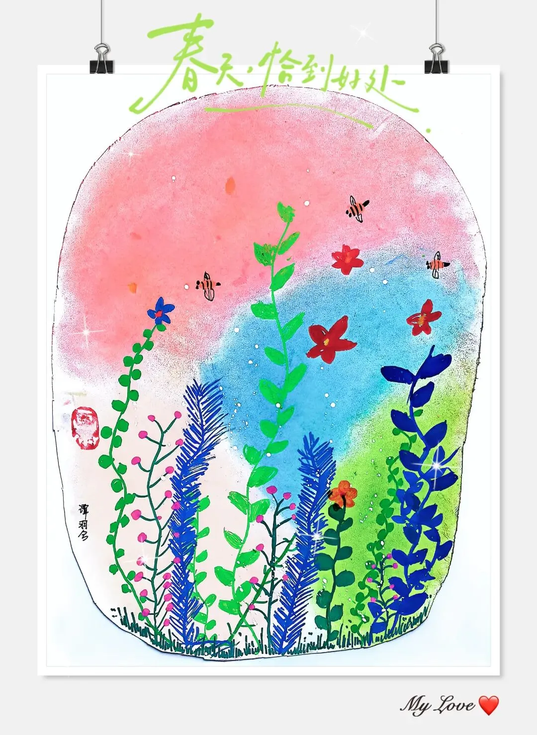 让孩子拿着画分享:「我的春天里藏着什么小秘密?」