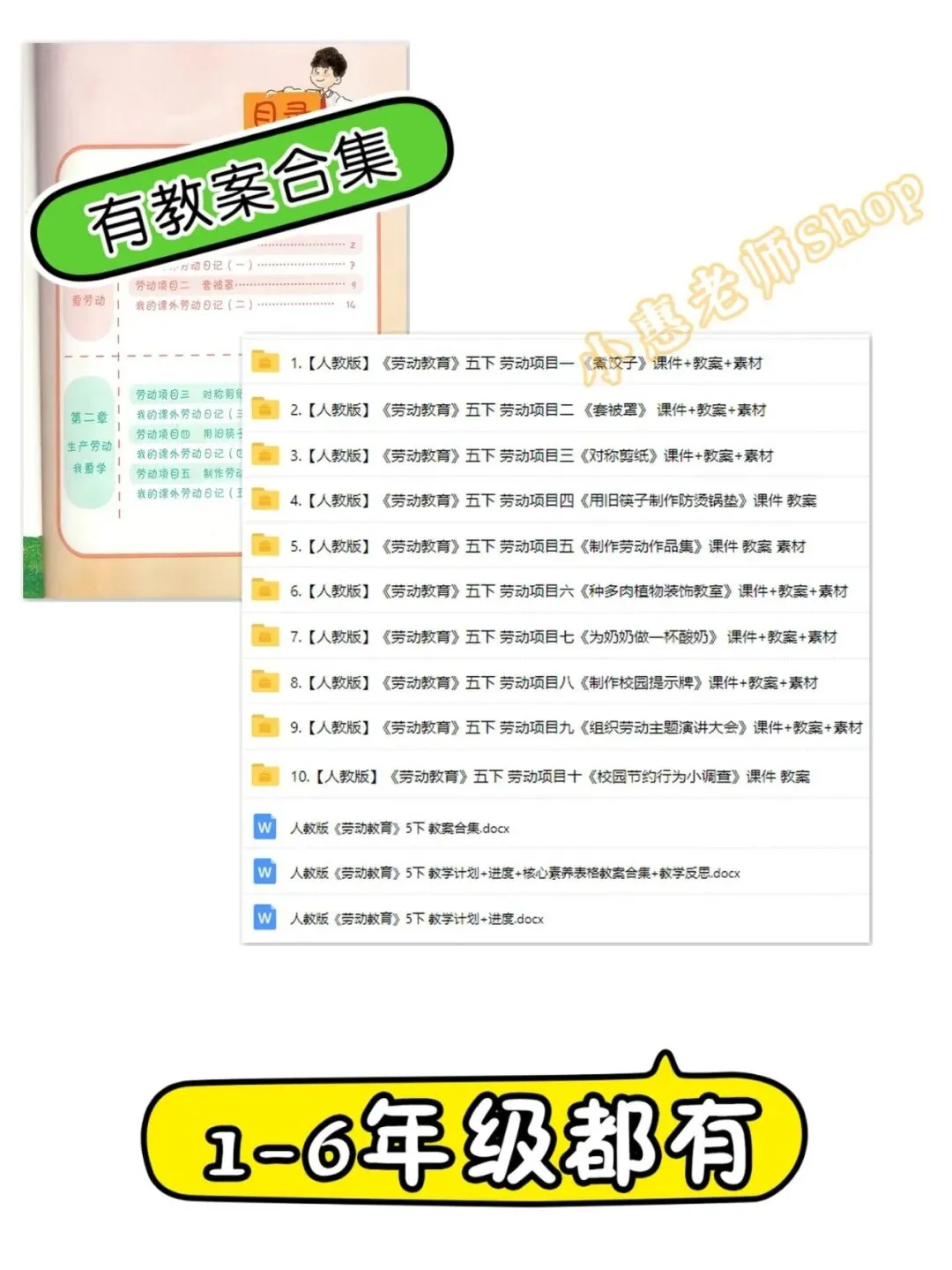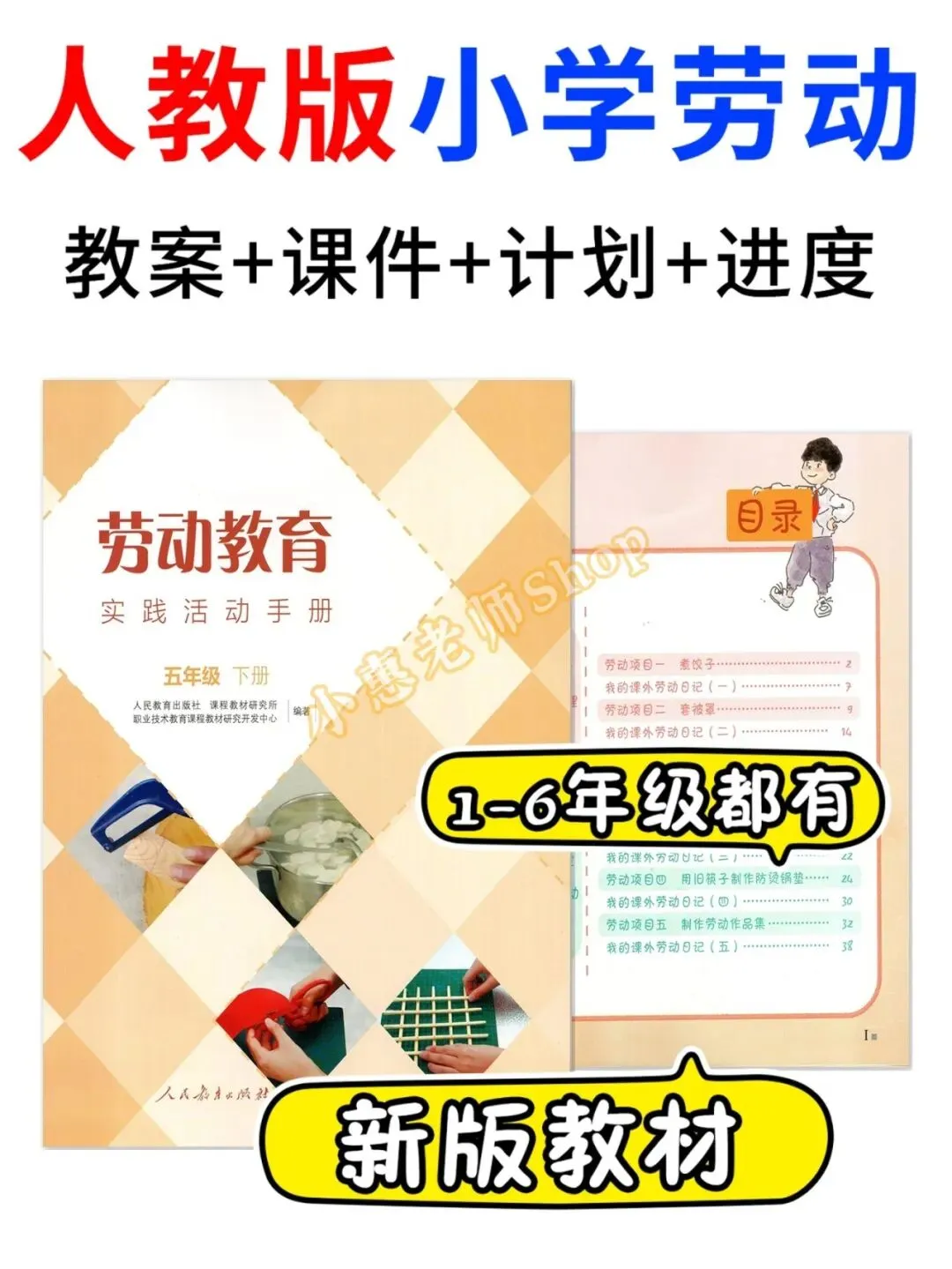 人民教育出版社,人教版小学劳动教育,1-6年级上下册都有教案课件计划进度