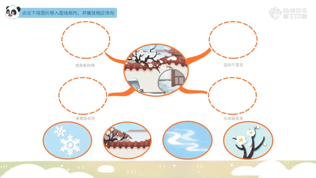 l操作课件,鼓励幼儿配对诗句与画面,趣味诵读古诗。