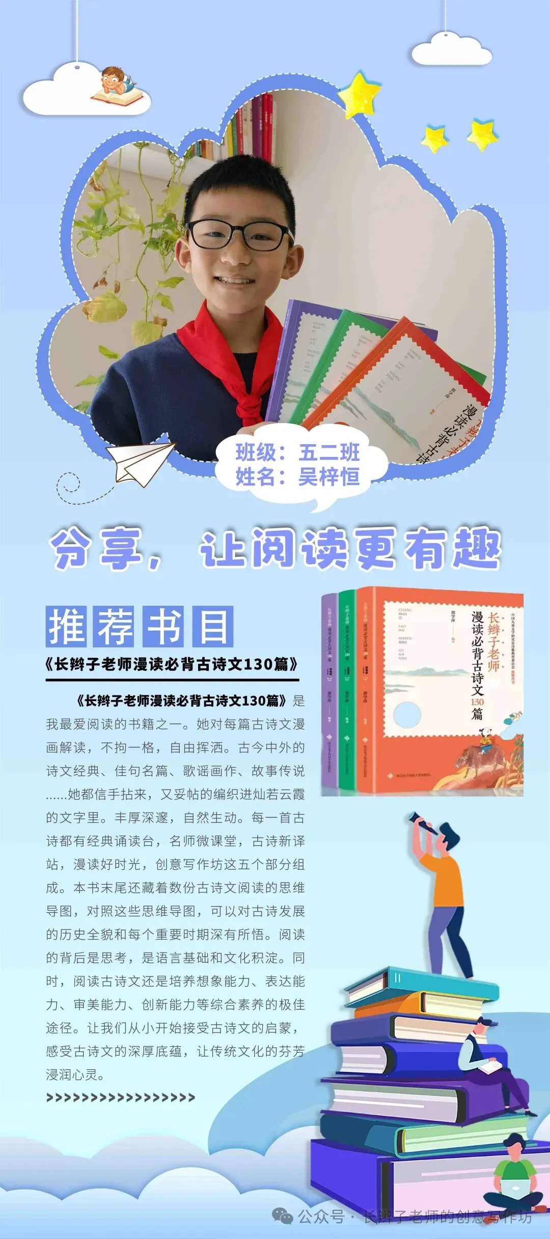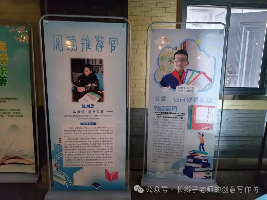 再来看看下面这个班级门口摆放着什么?对了,“阅读推荐官”展示板!当然,我更在意的是新学期首位“阅读推荐官”手中捧着的三本书——《长辫子老师漫读必背古诗文130篇》(目前上架第20印,总发行60万册,册,其畅销的原因就在于——实用、好用!)