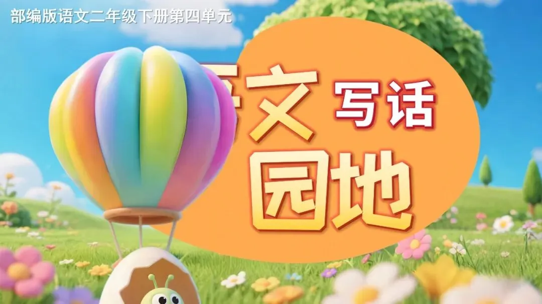 得出第一幅图是时间:早上,干什么:小虫子、蚂蚁将鸡蛋壳当成小船在水里看风景。第二幅时间:过了一会儿,干什么:小虫子、蚂蚁和蝴蝶将蛋壳做成一个热气球的筐,乘着热气球飞起来了。第三幅时间:到了下午,干什么:下雨了,小虫子、蝴蝶和蚂蚁将蛋壳当作小房子,在里面避雨。第四幅时间:天黑了,干什么:小虫子、蝴蝶和蚂蚁把蛋壳当作了摇篮,在里面睡觉。
