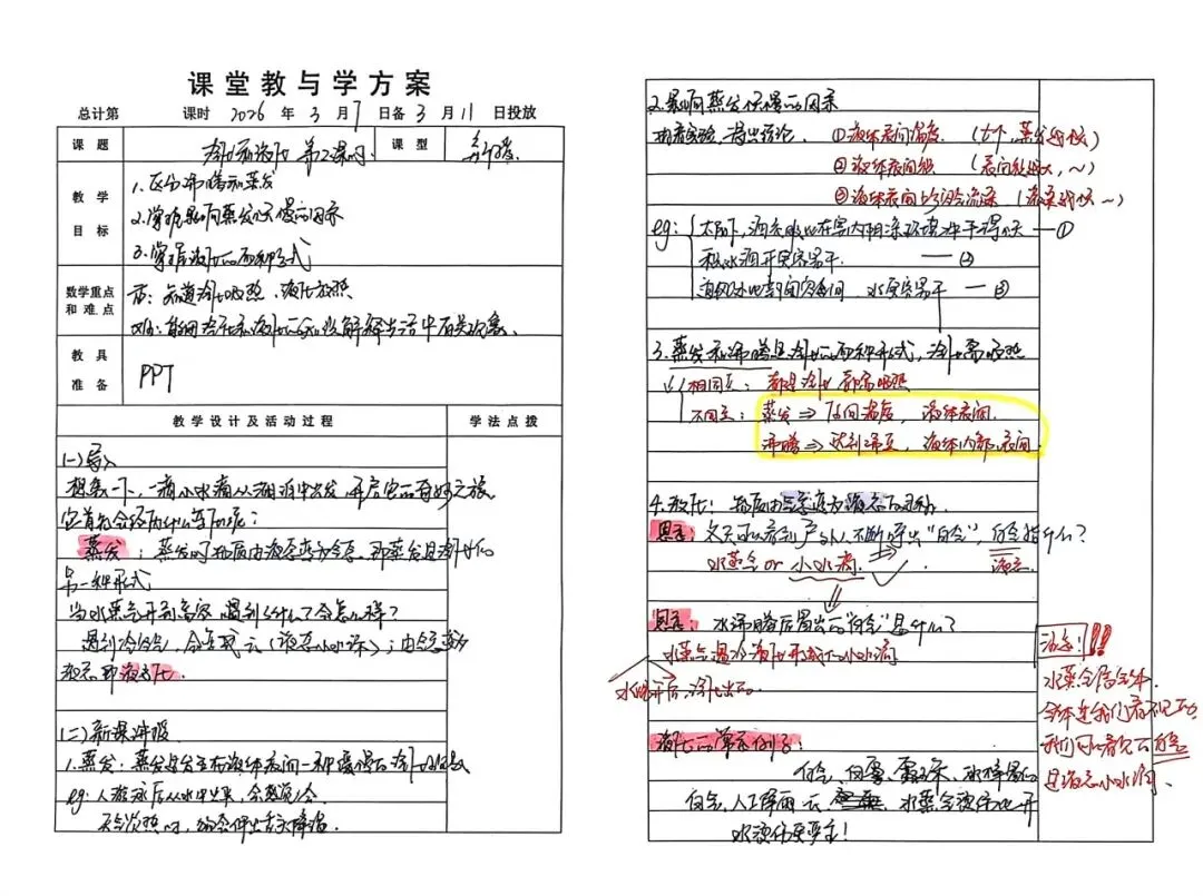 在我校,各学科教师以课标为纲,以学情为本,将对学科的理解、对学生的关爱融入每一份教案。字里行间,是教学思路的清晰梳理;环节设计中,是育人理念的悄然渗透。