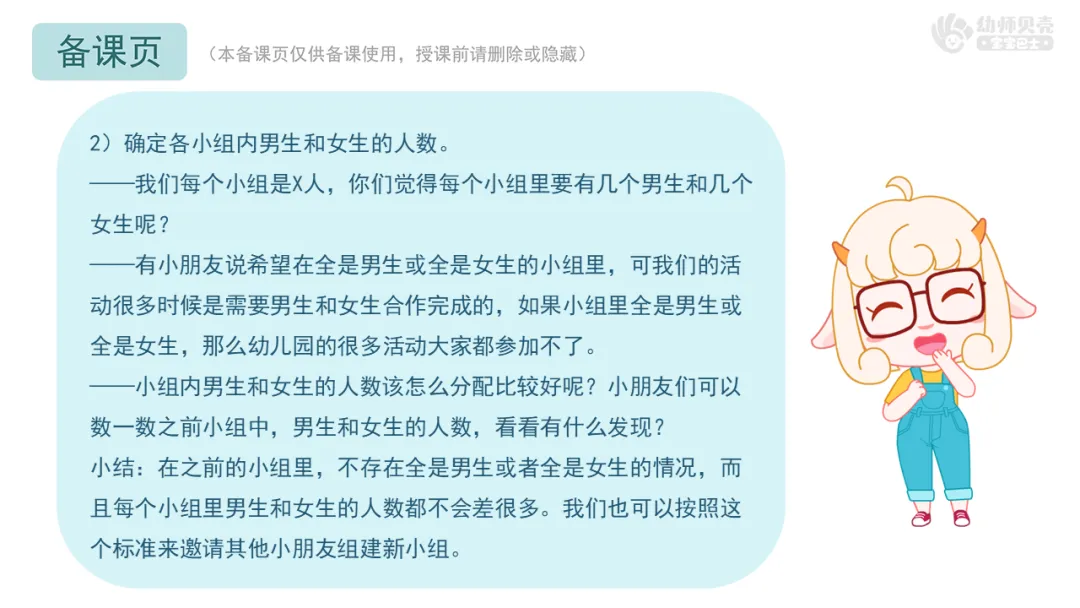 ——我们每个小组是X人,你们觉得每个小组里要有几个男生和几个女生呢?