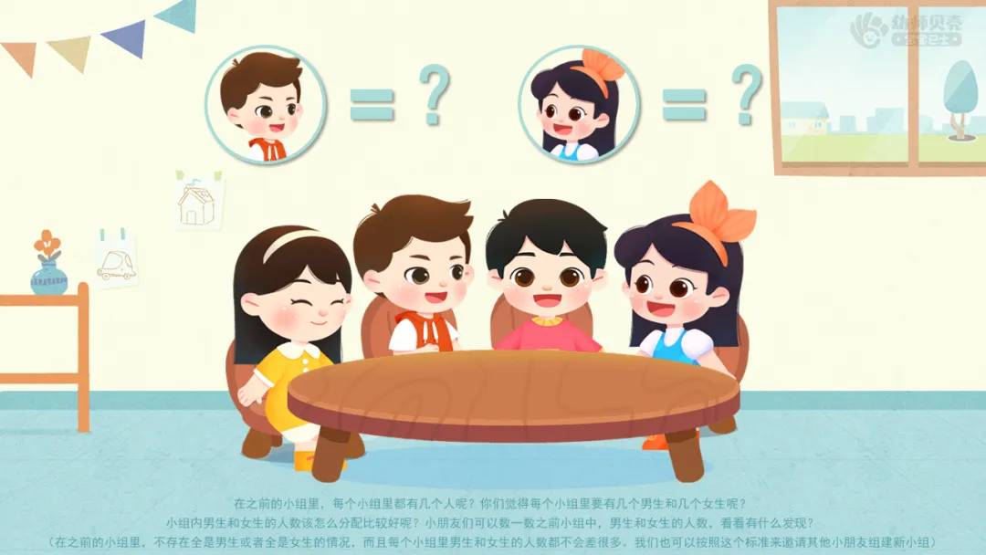 ——小组内男生和女生的人数该怎么分配比较好呢?小朋友们可以数一数之前小组中,男生和女生的人数,看看有什么发现?