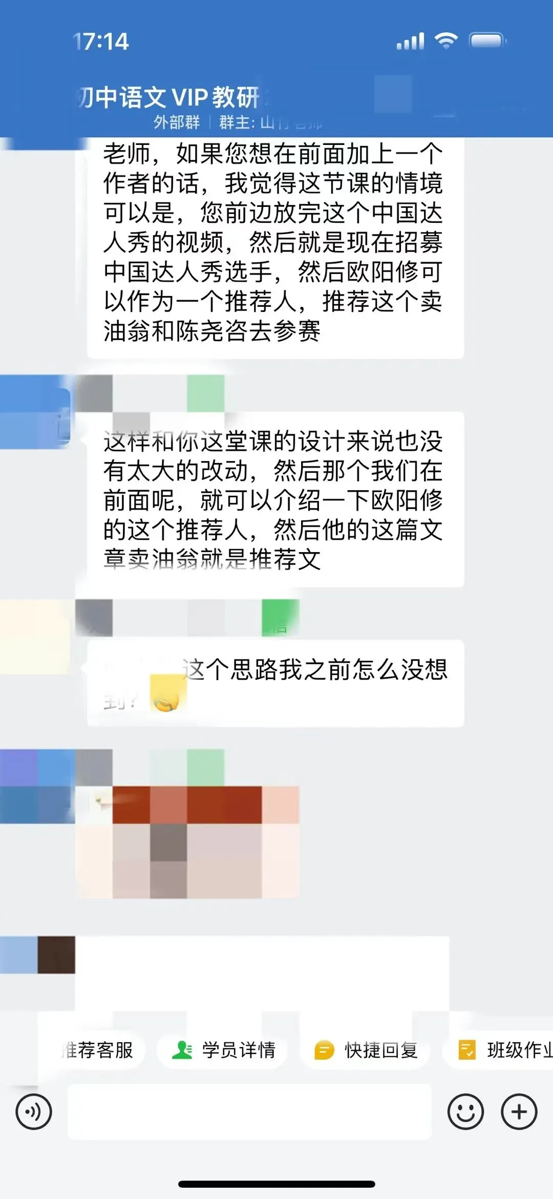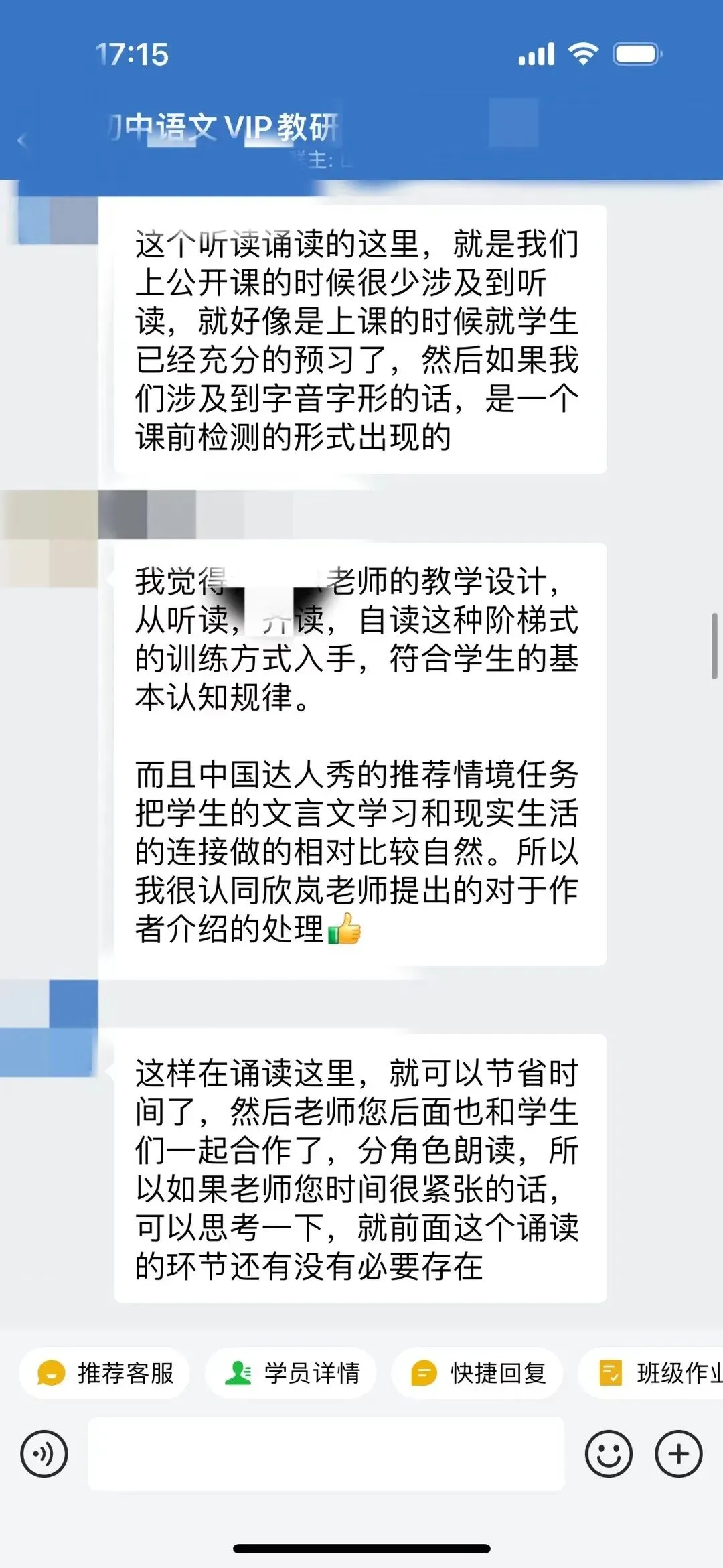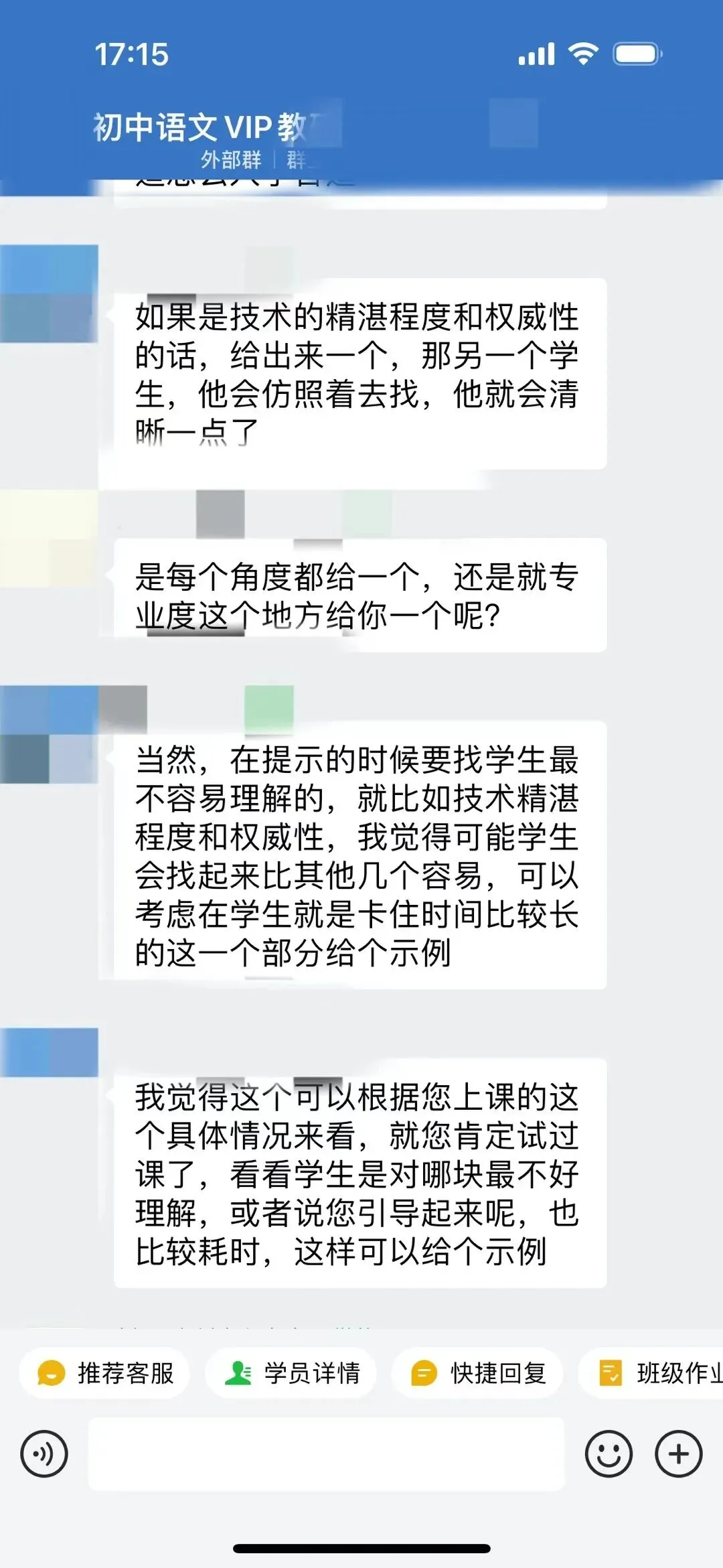 群里的老师们不负所托,提的建议完美得解决了磨课老师的问题,来看看大家是怎么说的吧: