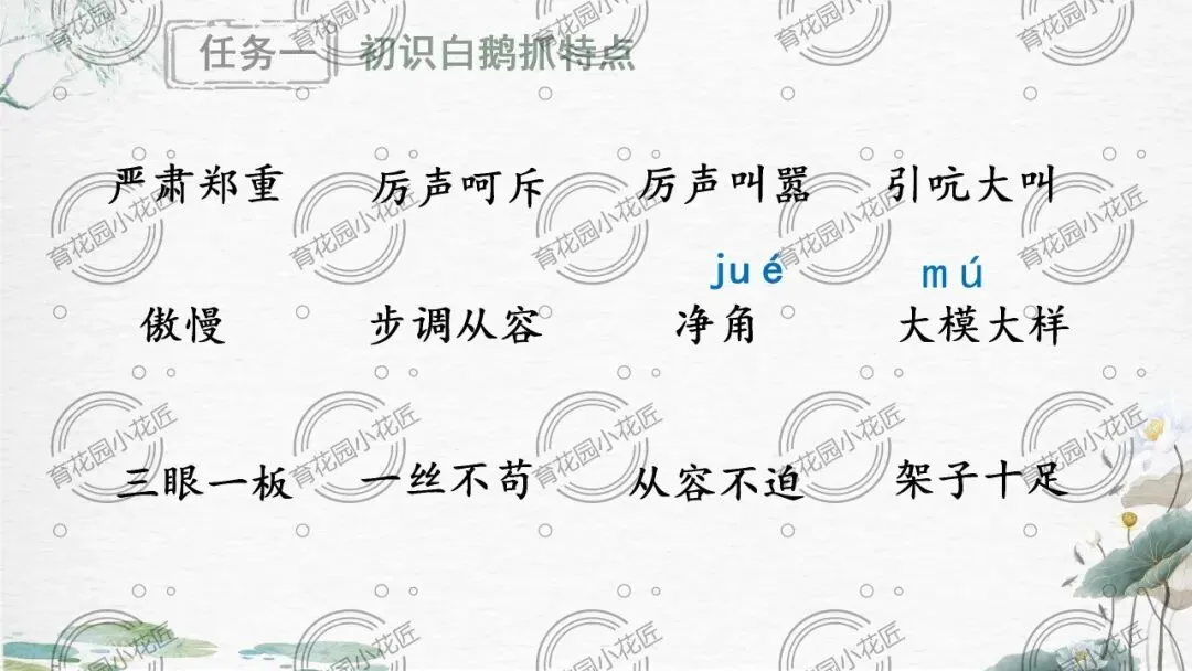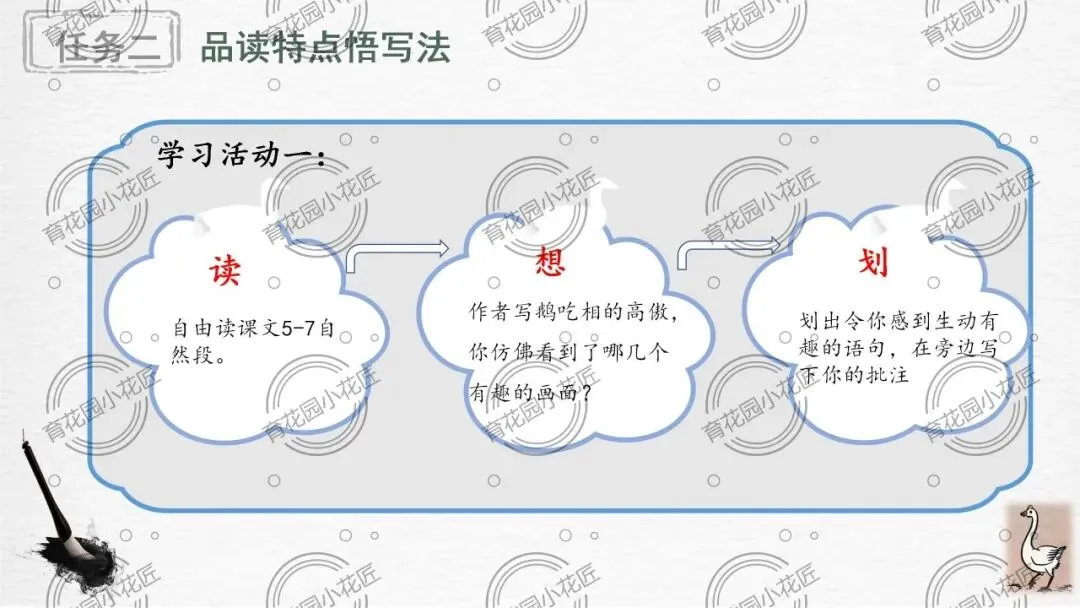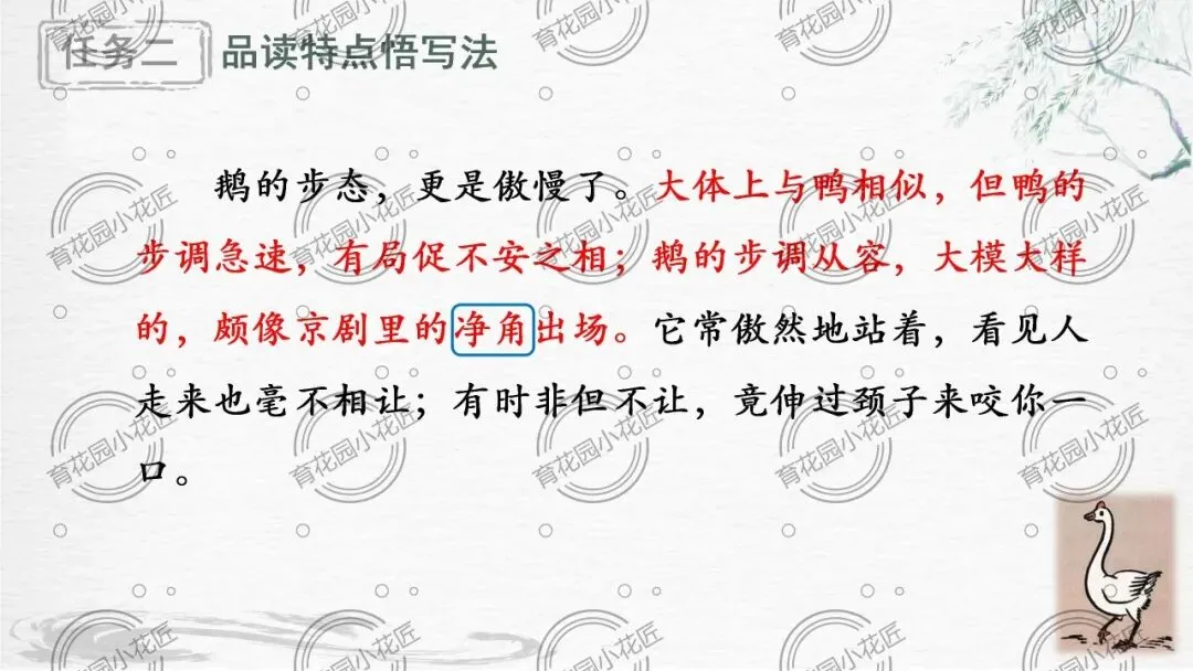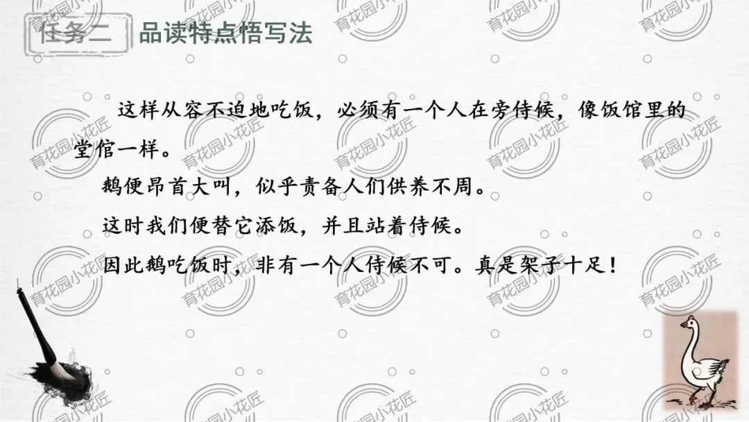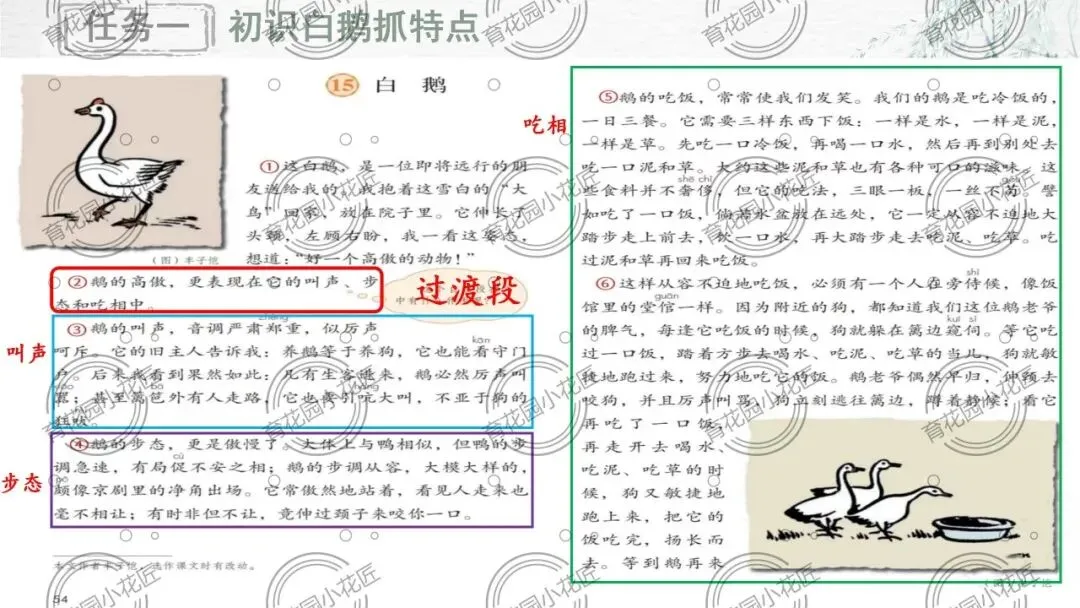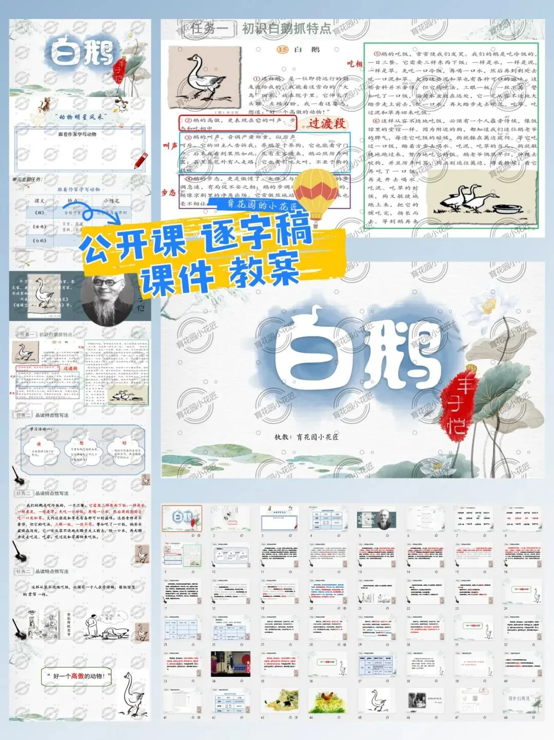 【动物风采】四下14《白鹅》课件逐字稿教案实录学习单任务群