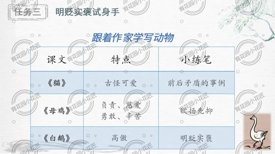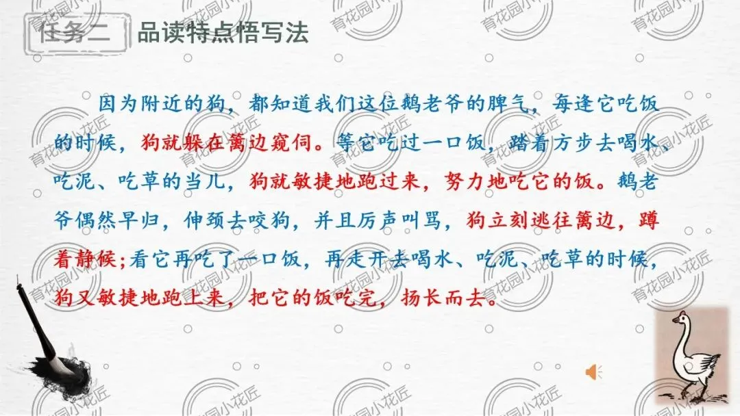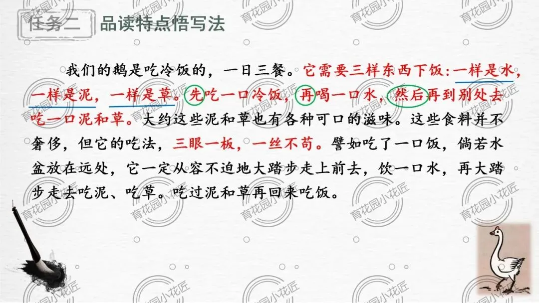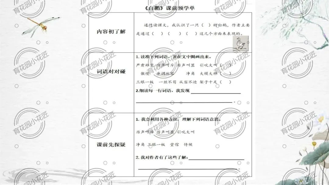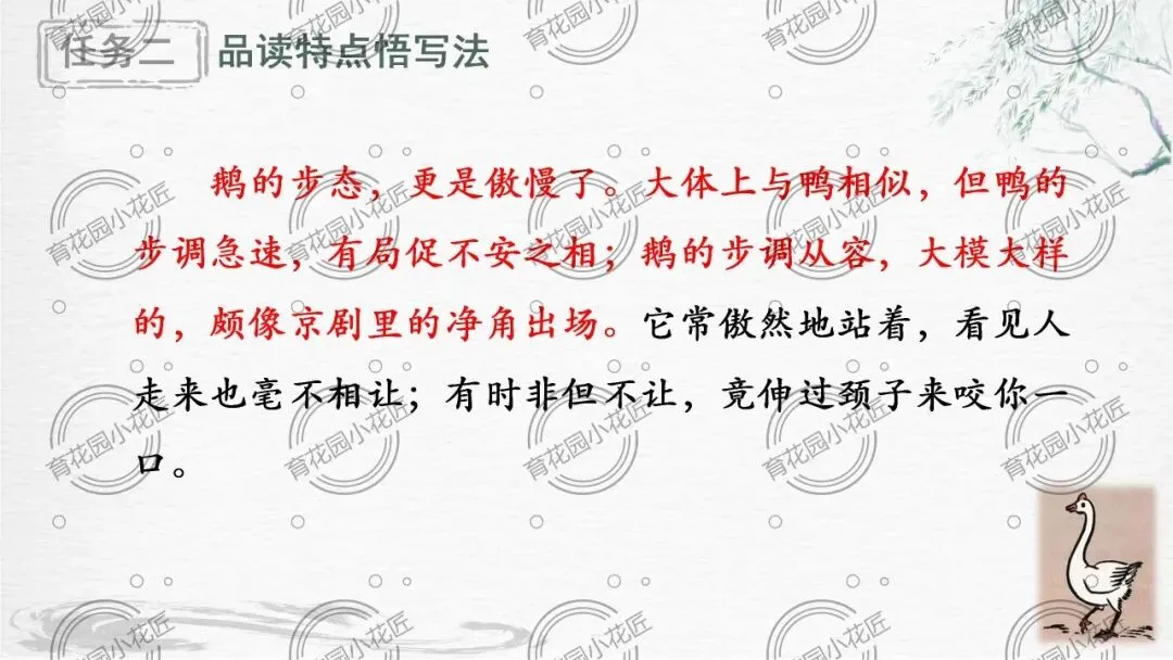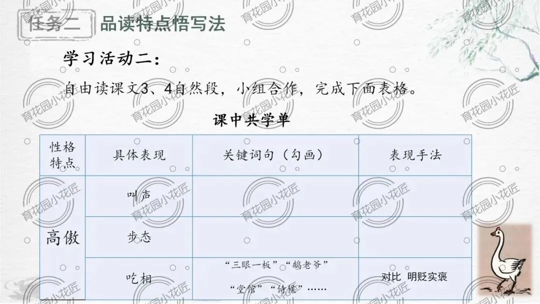 【动物风采】四下14《白鹅》课件逐字稿教案实录学习单任务群