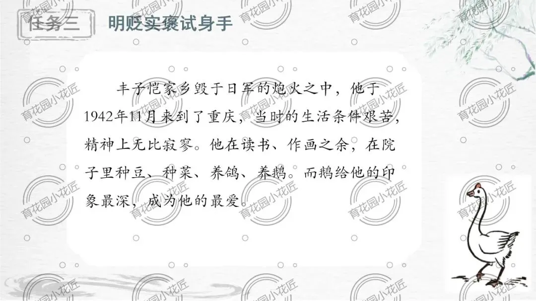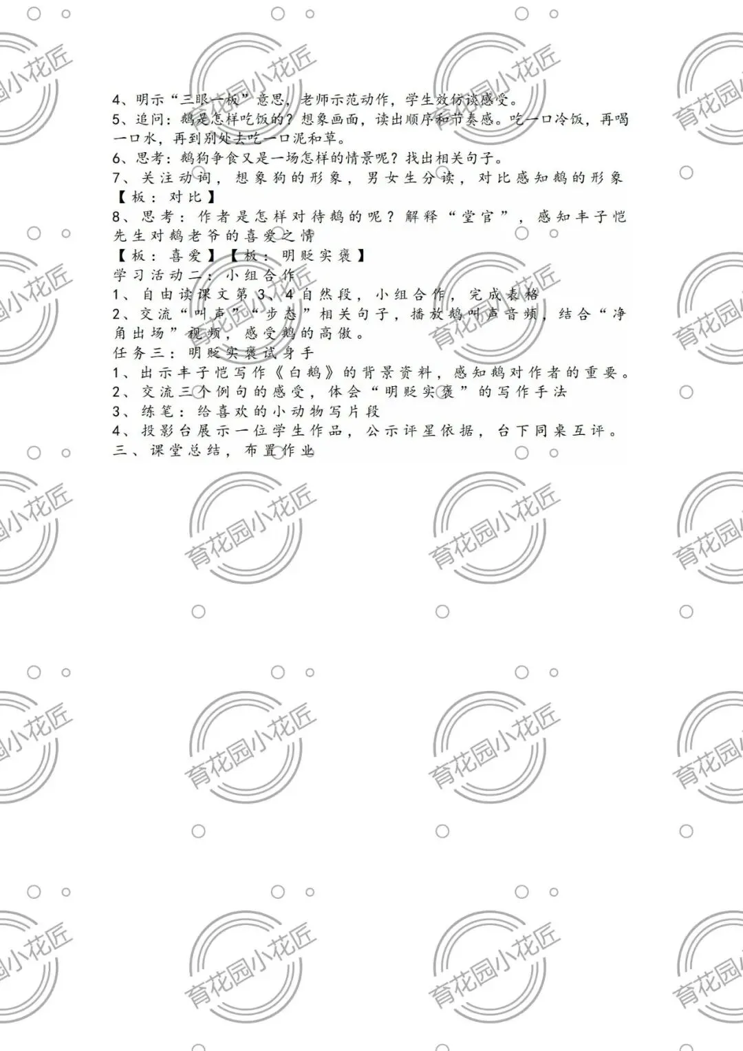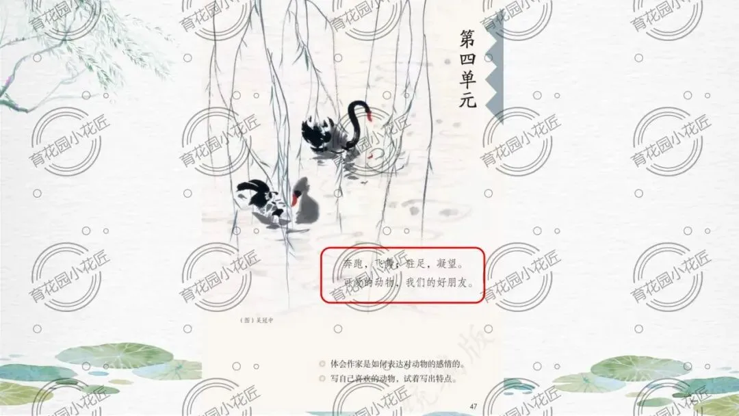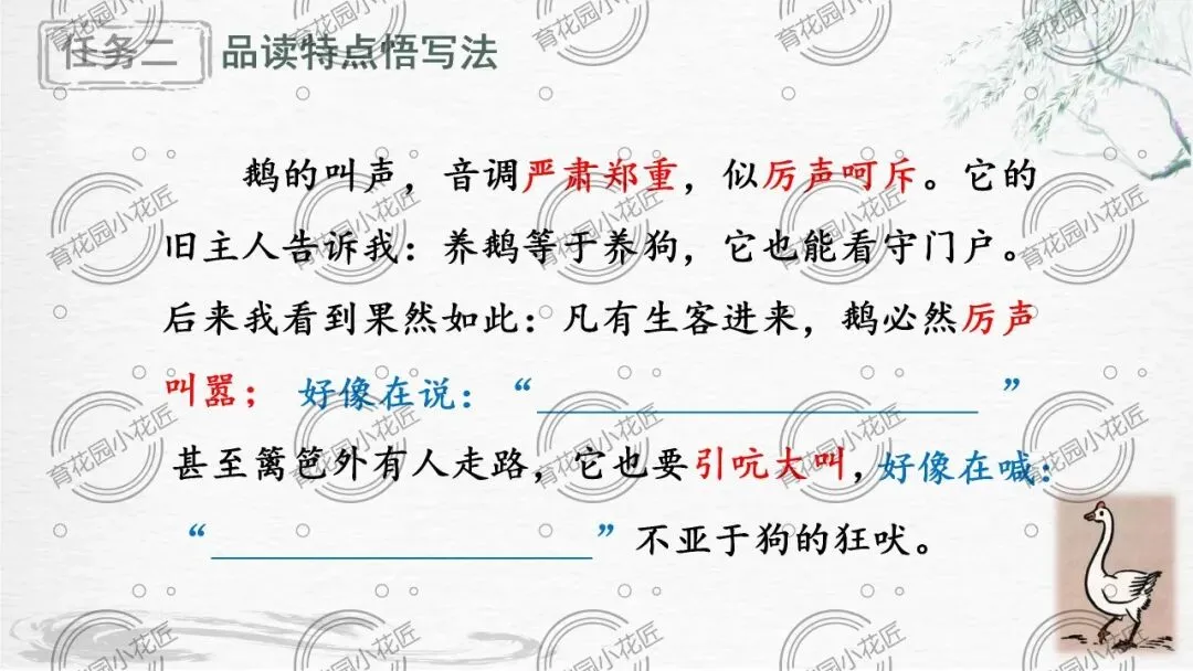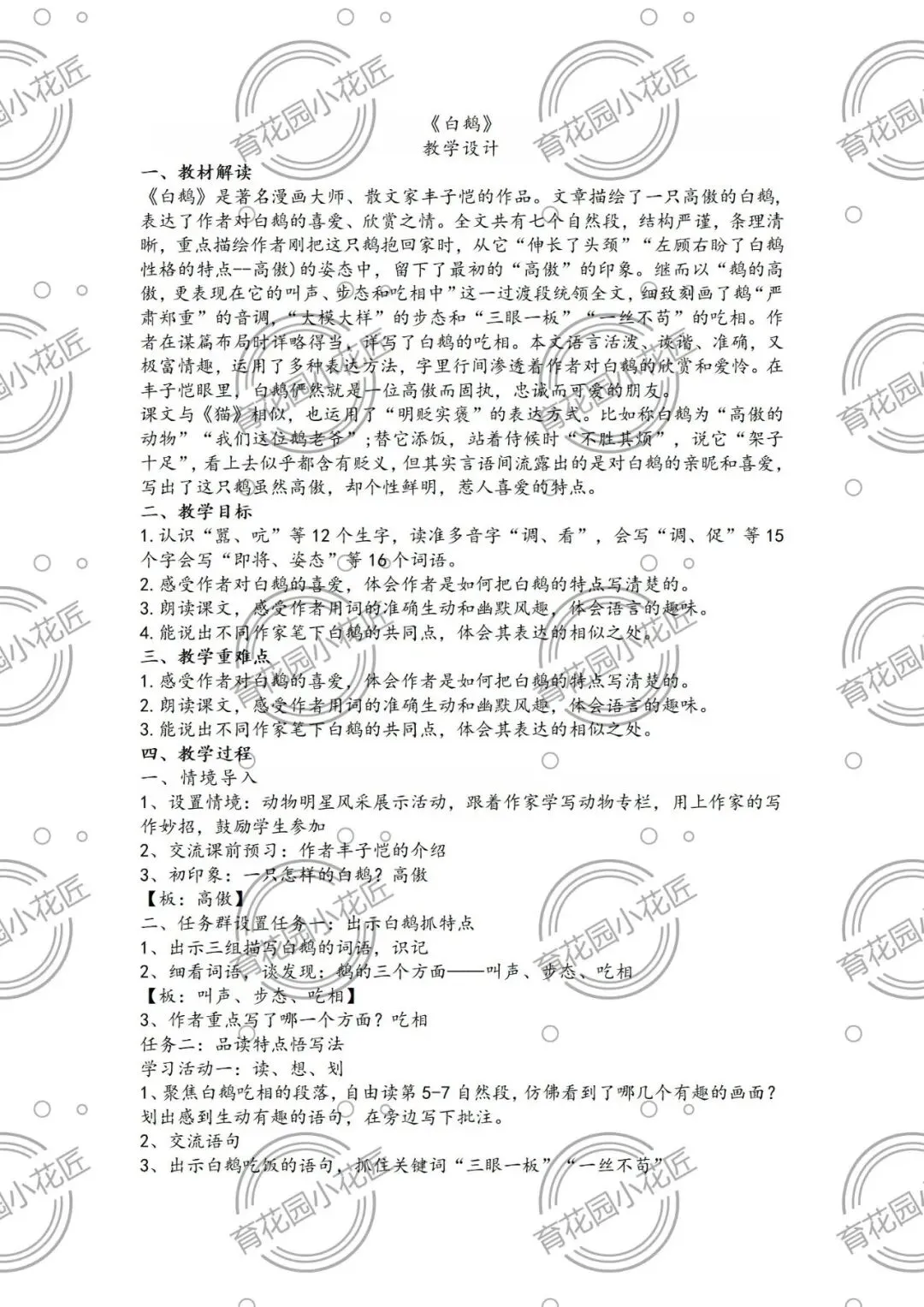 【动物风采】四下14《白鹅》课件逐字稿教案实录学习单任务群