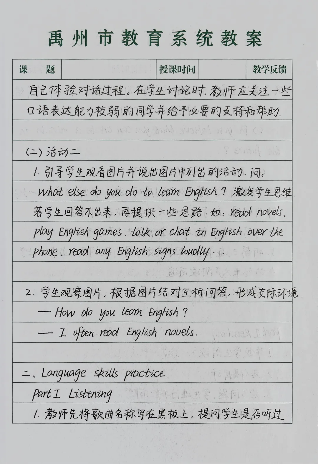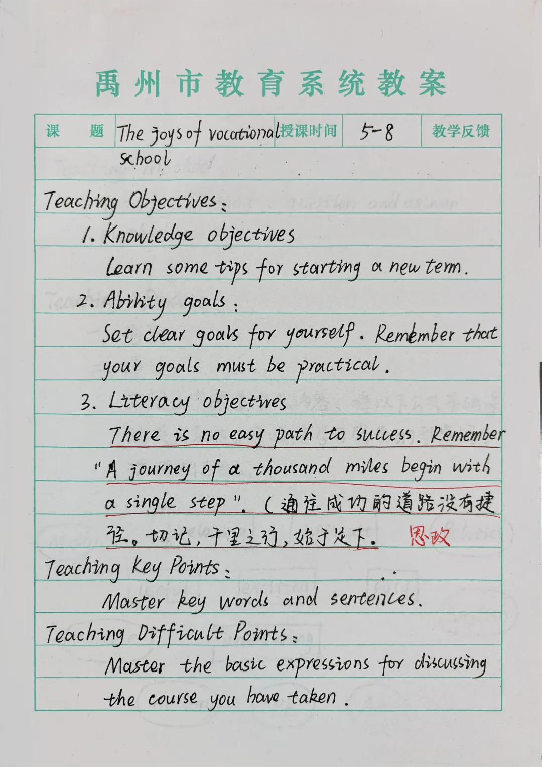 本次活动面向全校教师广泛征集课程思政教案,共收到各专业、各学科教师报送的教案近300份。经过各教学部(组)严格初评,教务科与教研室组织评审组进行集中评选,最终择优评选出一等奖42份、二等奖54份,共计96份思政元素挖掘恰当、思政融入课程紧密、教学设计环节巧妙、书写工整规范的优秀教案。