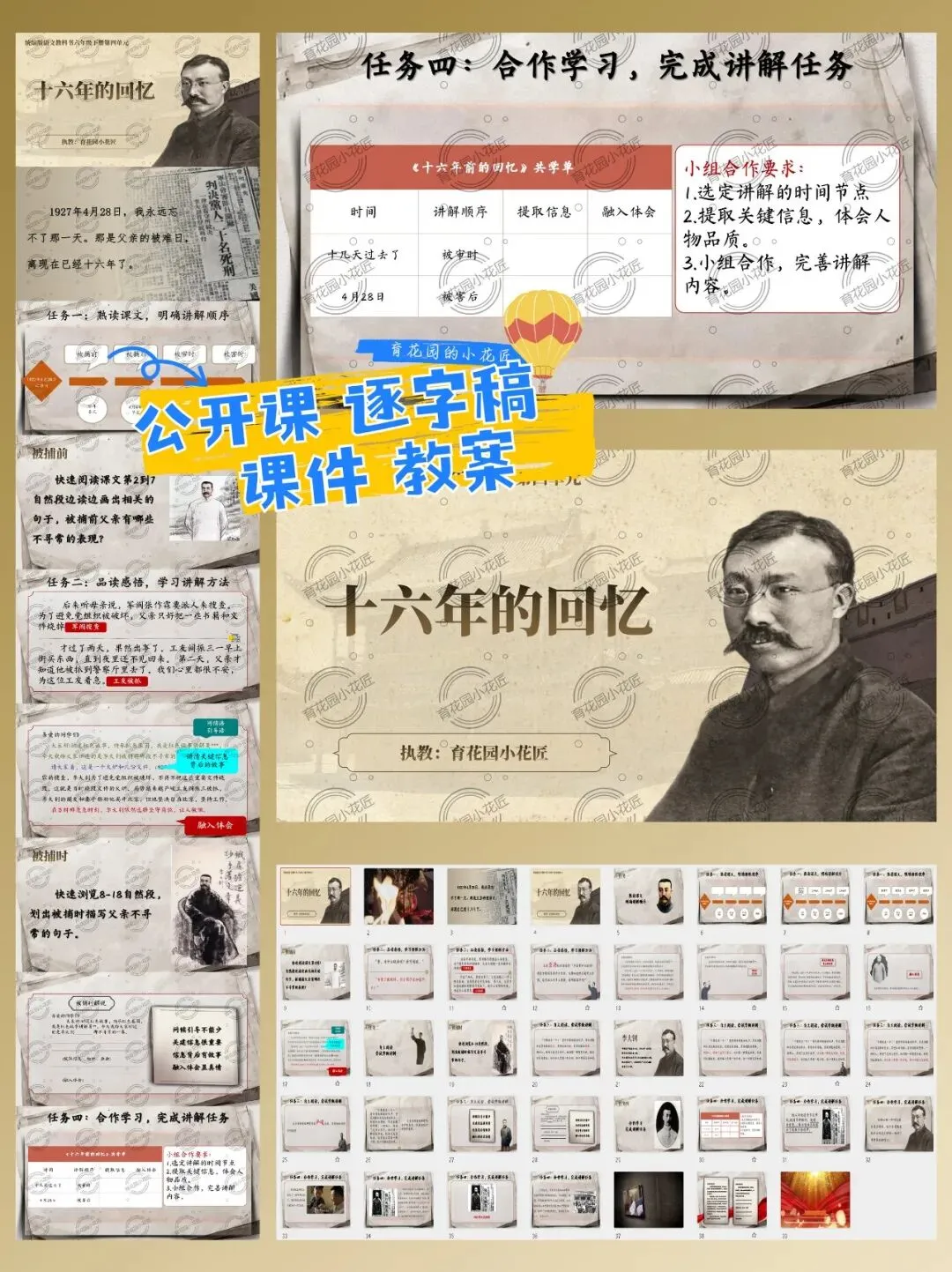 当前位置:首页>课件>红色讲解员《十六年前的回忆》课件逐字稿教案实录学习单任务群公开课六年级下册第11课