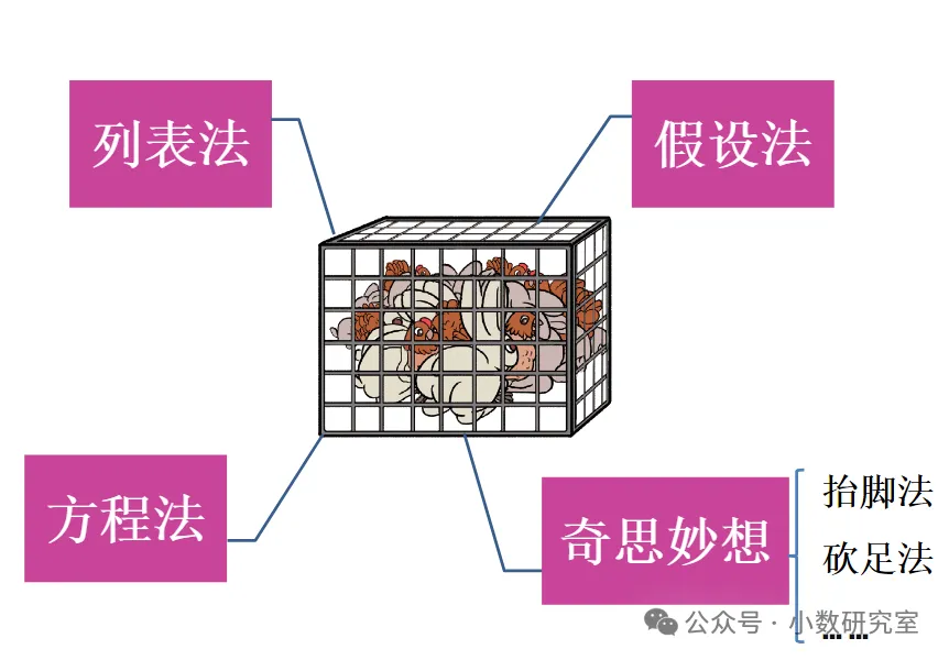 师像这样的问题还有许许多多我们就把这样的问题统称为鸡兔同笼问题今天我们研究鸡兔同笼问题最大的价值就是我们找到了一种解决这种问题的模型。只要有了这种模型意识