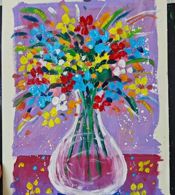 师:现在,我们就来画一个漂亮的水彩花瓶送给妈妈好不吗?