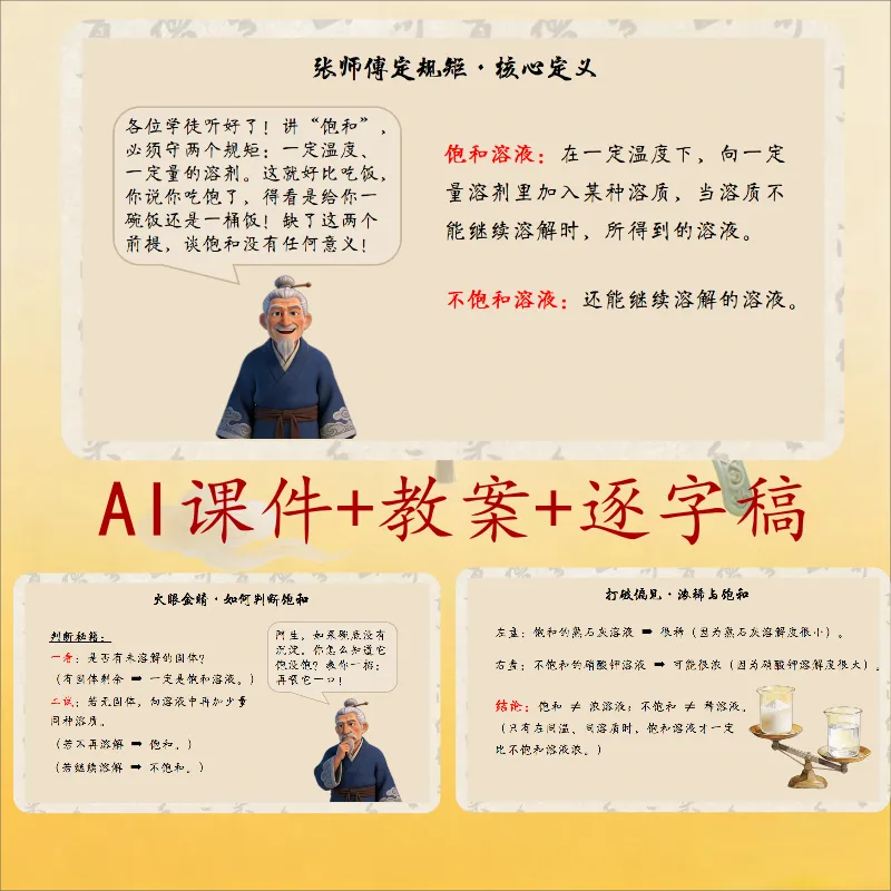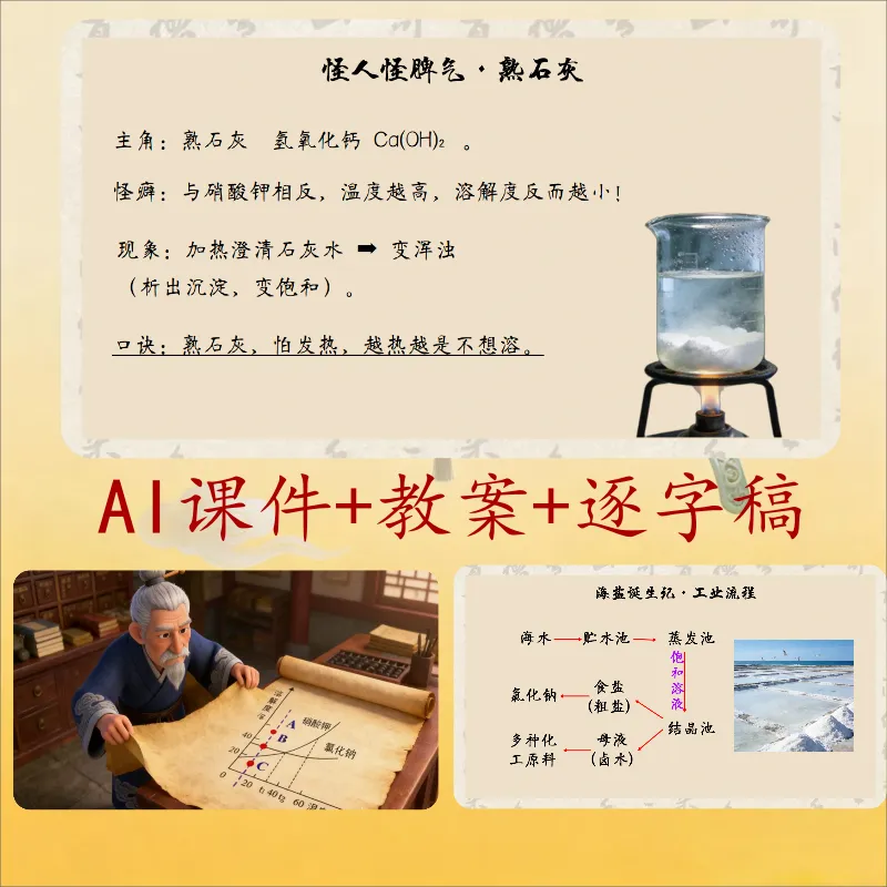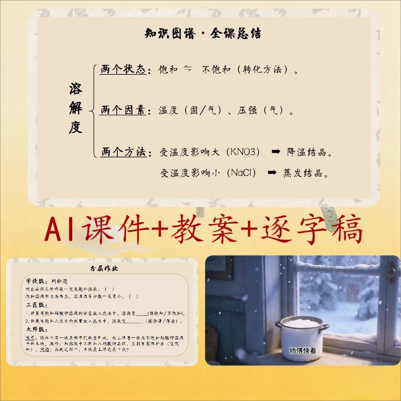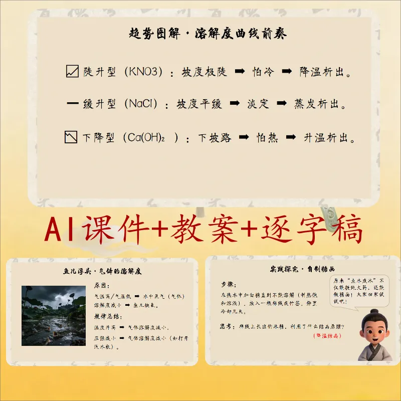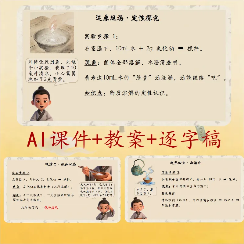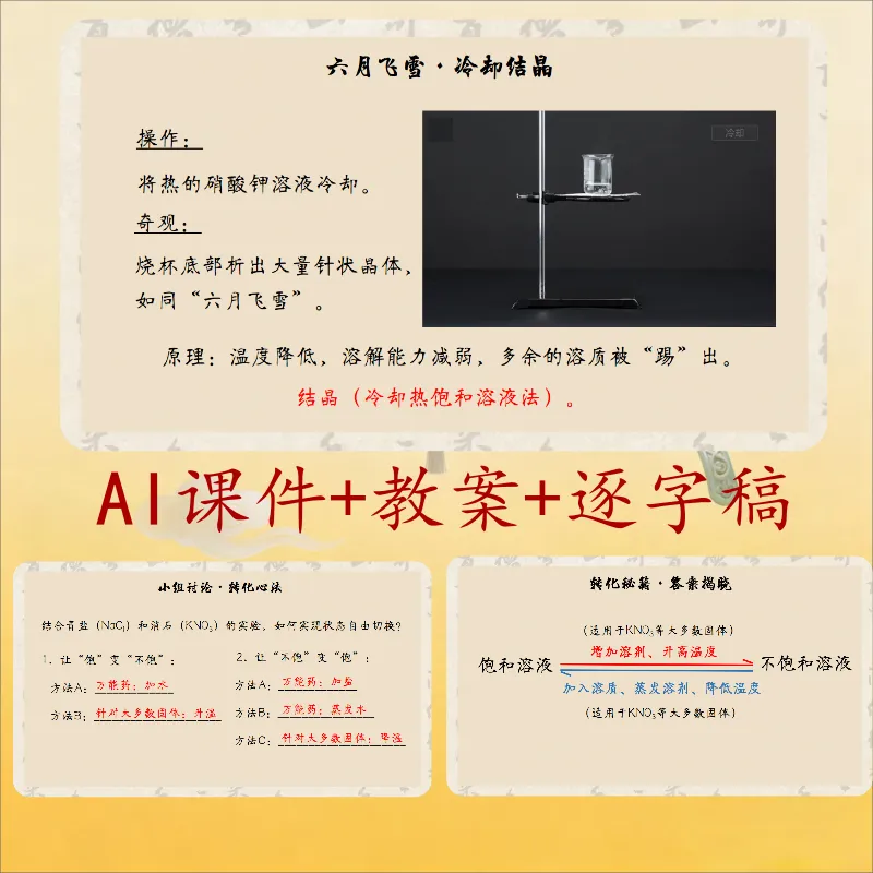 >九年级化学ai赋能公开课《溶解度》,课件+教学设计+逐字稿,需要上公开课老师可以直接用.