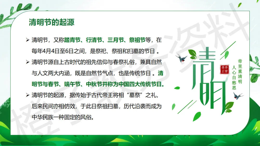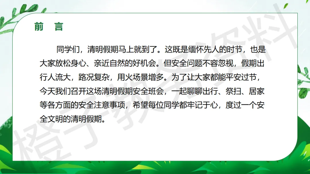 今天分享的是清明节假期安全主题班会课件PPT课件,主题是《清明假期至 安全要牢记》。