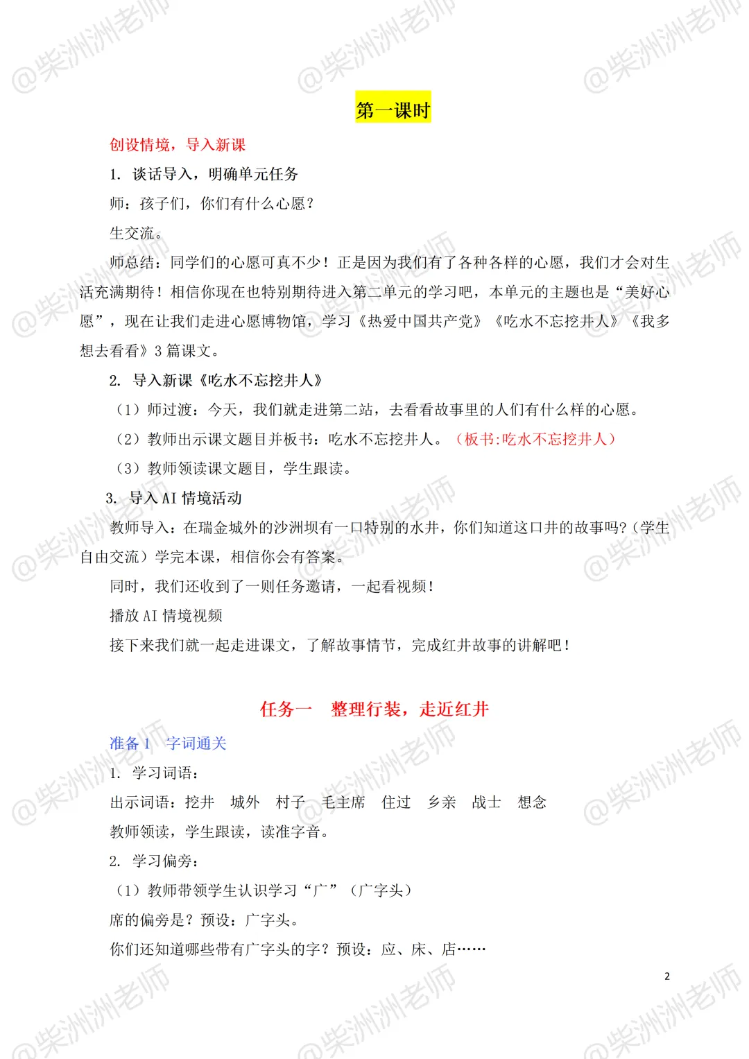 AI赋能!一下《吃水不忘挖井人》公开课课件+教案!红井故事宣讲员