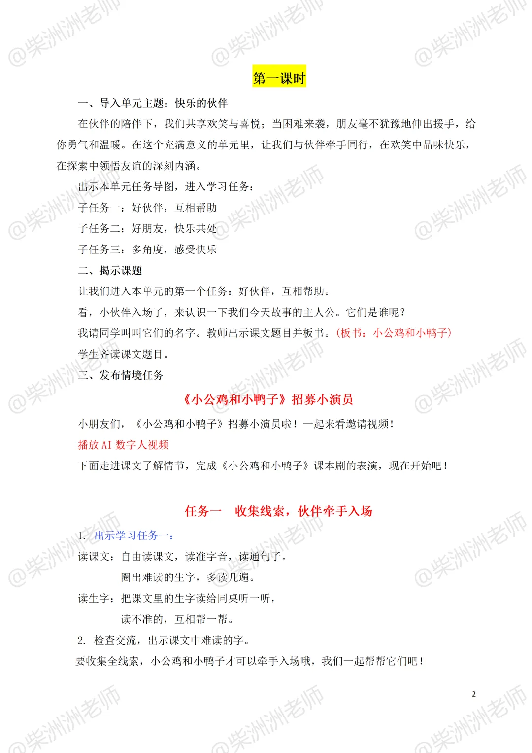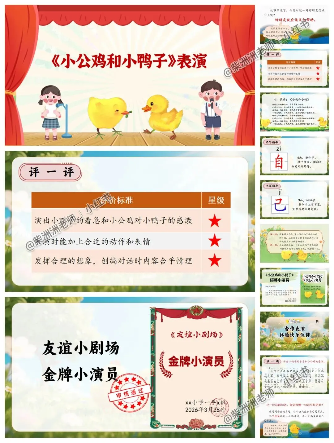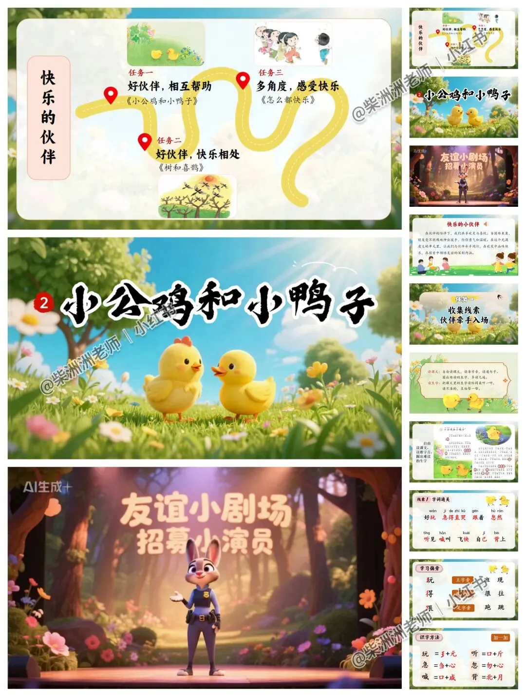 AI赋能!一下《小公鸡和小鸭子》公开课课件+教案!招募小演员