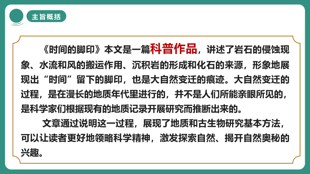 >八年级下册语文《时间的脚印》任务型课件思路很清晰!
