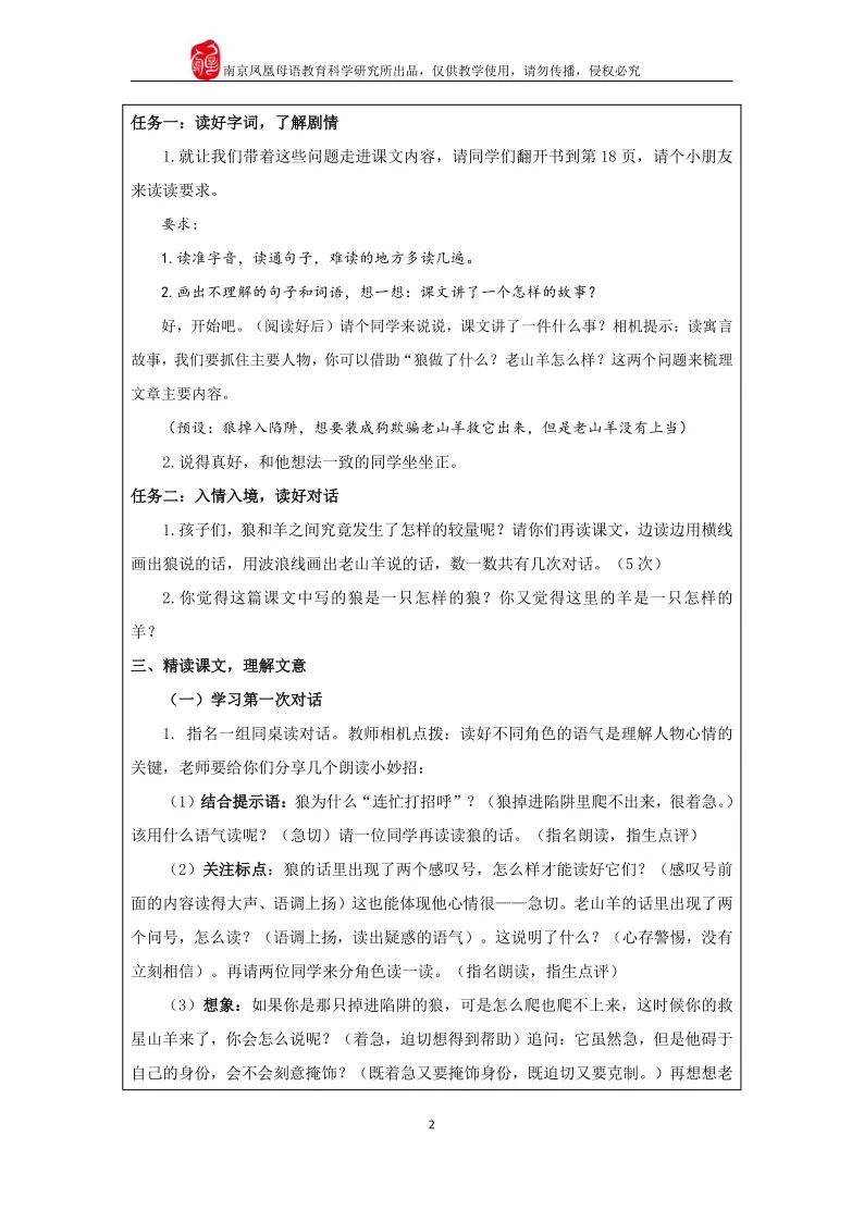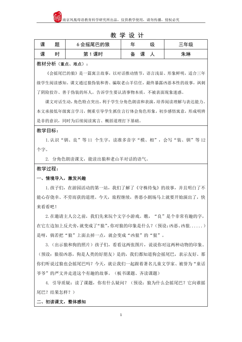 △《会摇尾巴的狼》(第一课时)教案(仅展示部分)