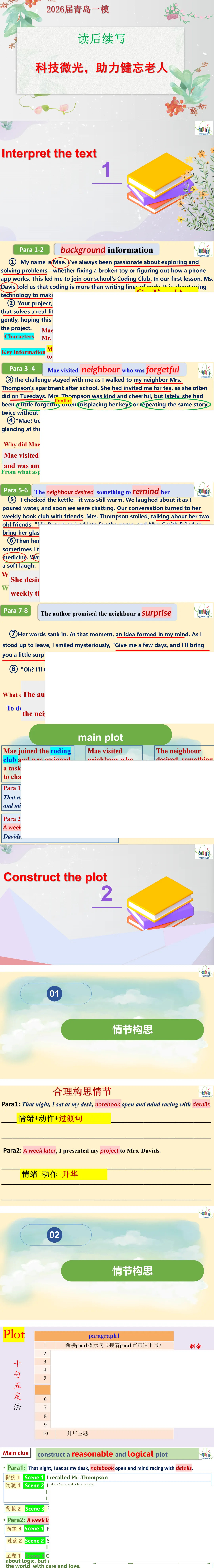 今日分享:【续写课件】2026届青岛一模:科技微光,助力健忘老人