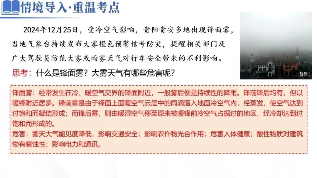 思考:什么是锋面雾?大雾天气有哪些危害呢?