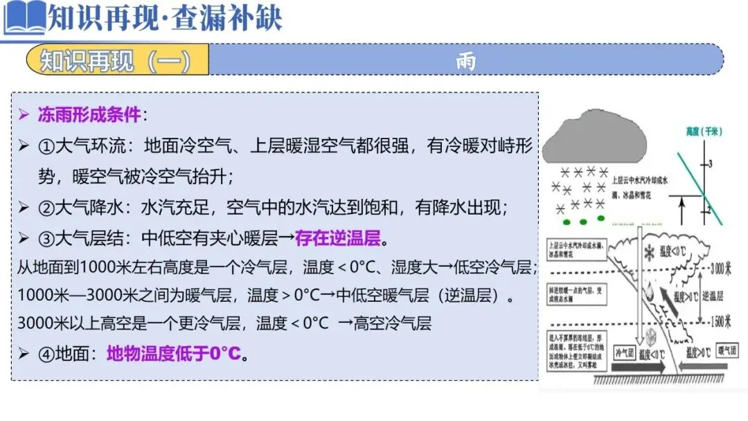 3000米以上高空是一个更冷气层,温度<0°C→高空冷气层