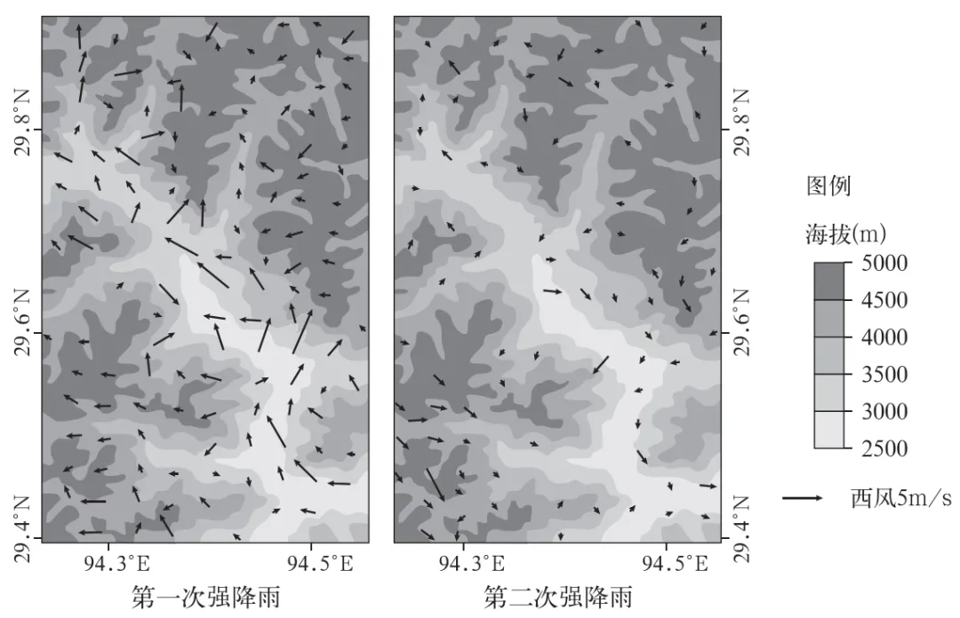 2.两次强降雨时谷地风速差异显著,主要原因是()
