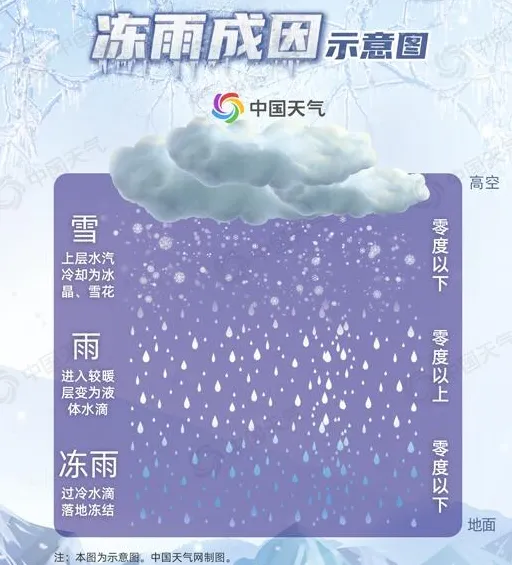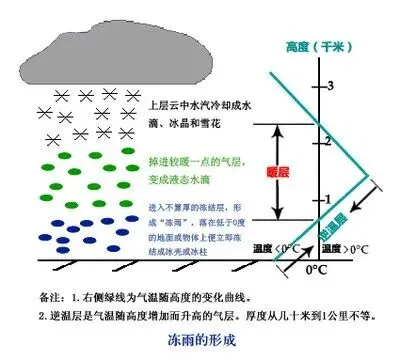 定义:是一种由过冷水滴组成,过冷水滴与温度低于0℃的地物体接触时立即冻结的降水,称为冻雨。在气象学上也称为“雨凇。冻雨发生地区往往是冷暖空气相遇对峙的地带。