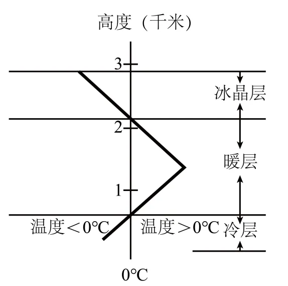冻雨是过冷雨滴(温度低于0℃的液态小水滴)在降落到近地面时遇到温度低于0℃的物体,迅速冻结成冰的天气现象。2024年春运期间,受寒潮影响,湖北、湖南境内大量旅客因冻雨滞留在高速公路。下图为冻雨形成时气温随高度的变化示意图,完成下面小题。