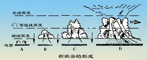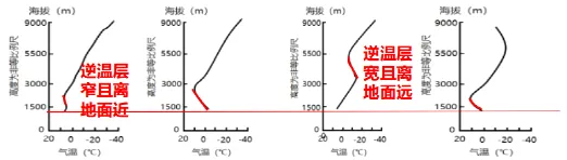 1000米—3000米之间为暖气层,温度>0°C→中低空暖气层(逆温层)。
