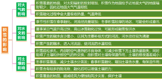 自然带 | 影响自然带的水平和垂直分布,影响雪线的高低 |