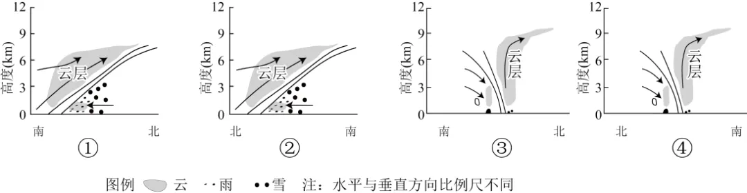 3.下列天气系统剖面图中,最符合“雷打雪”的是()