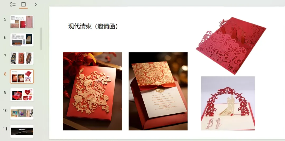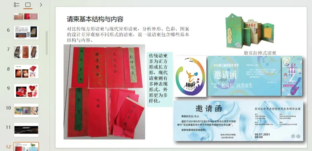 教师展示折叠式、镂空式等创意请柬,激发学生兴趣。