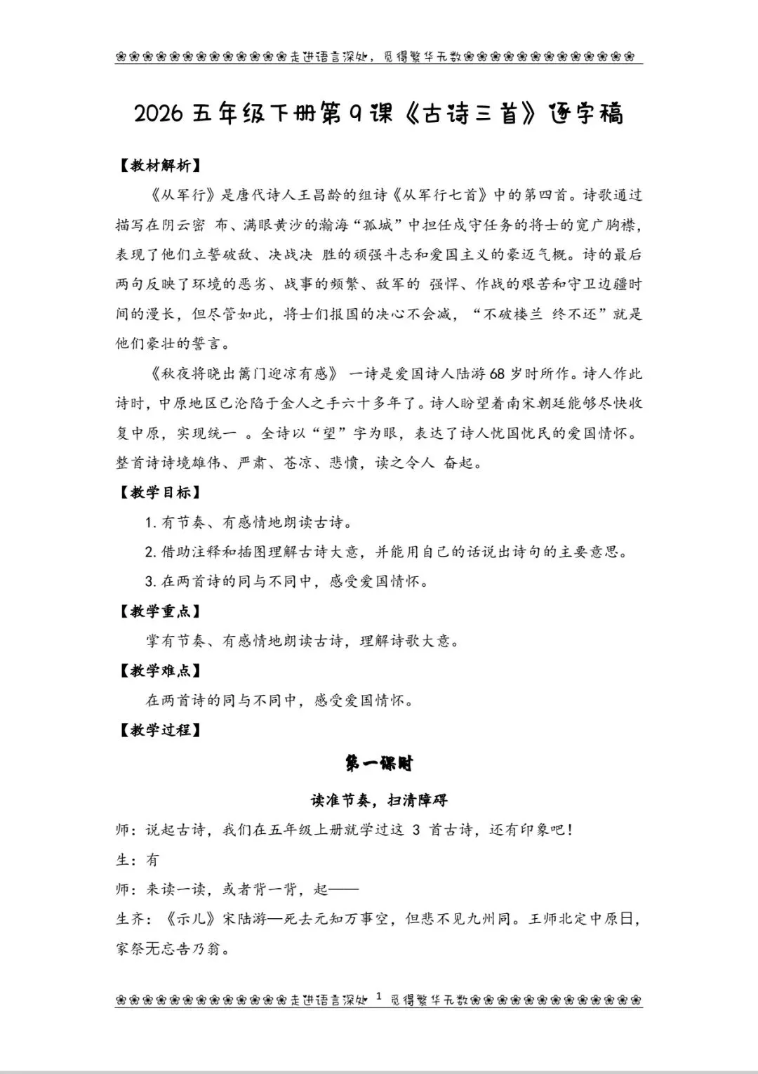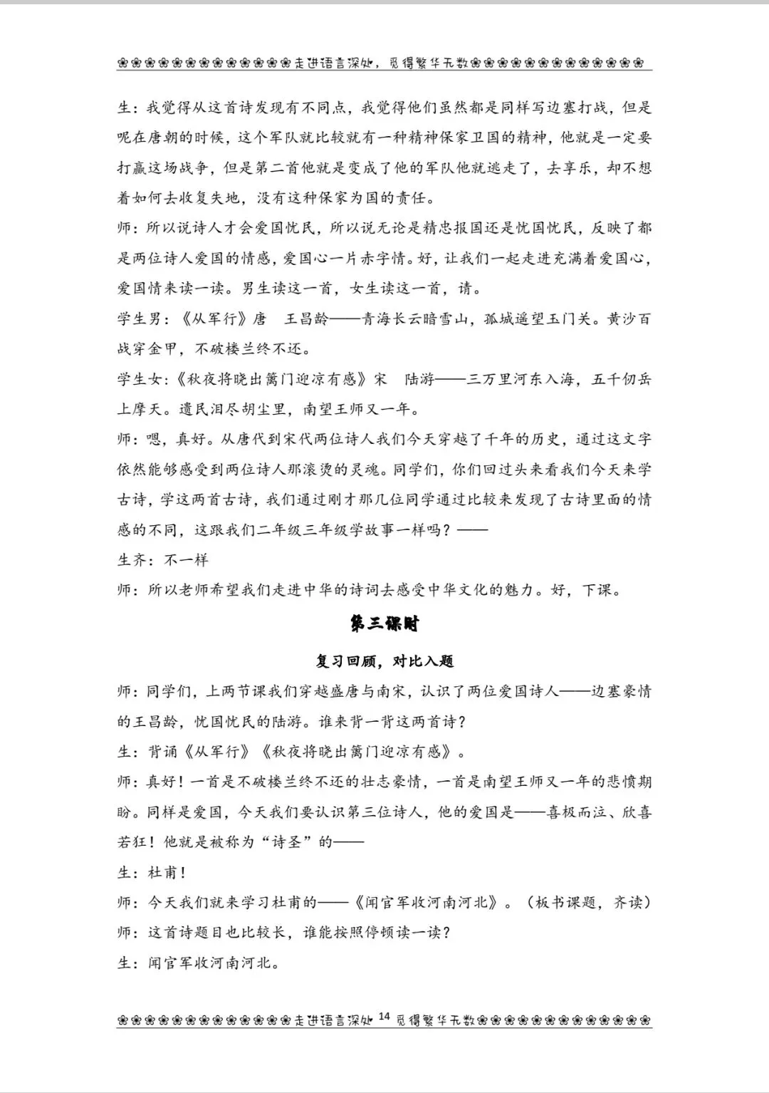 人教版四年级语文下册9《短诗三首》教案与教学反思