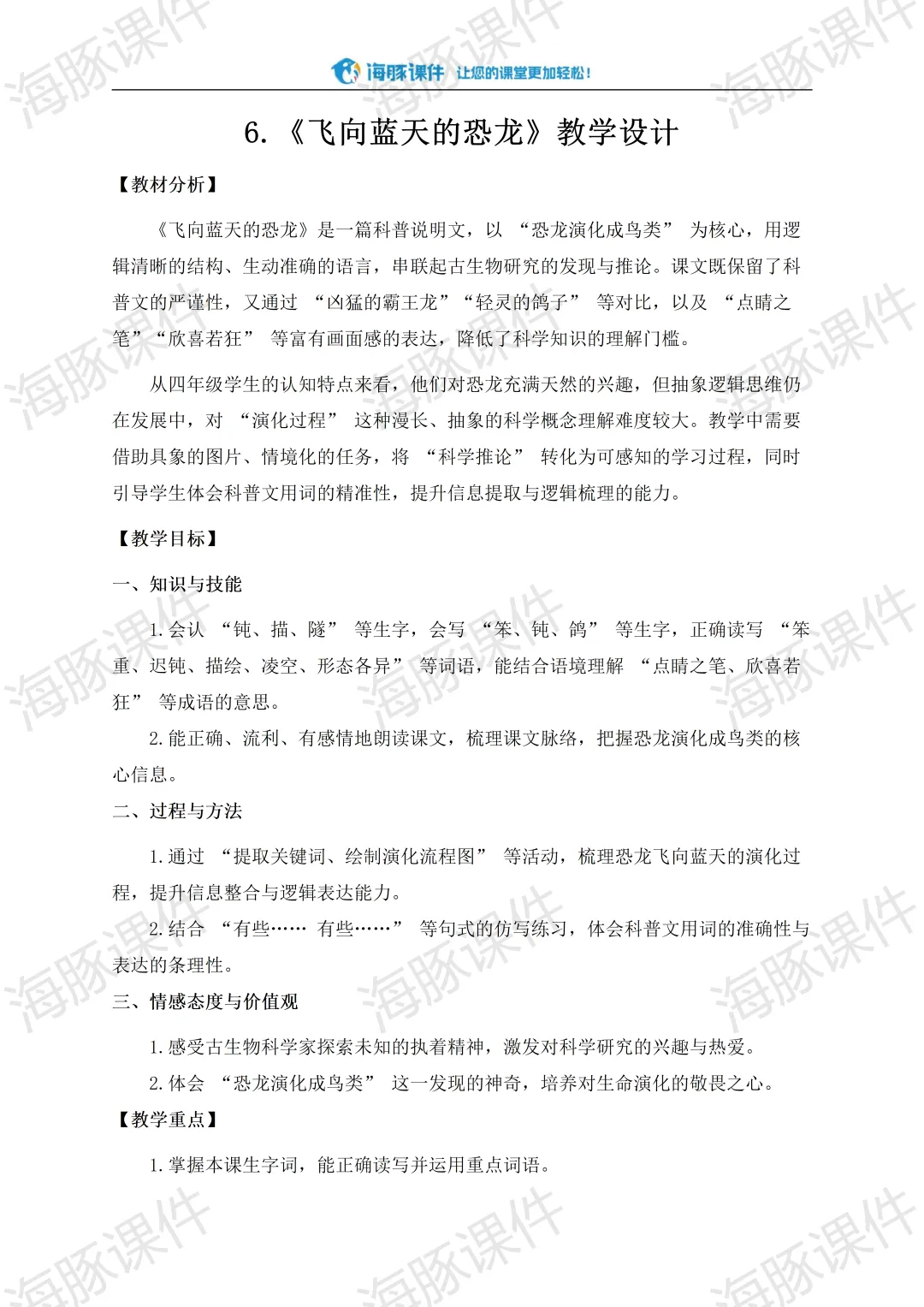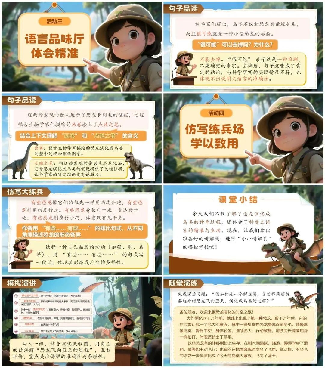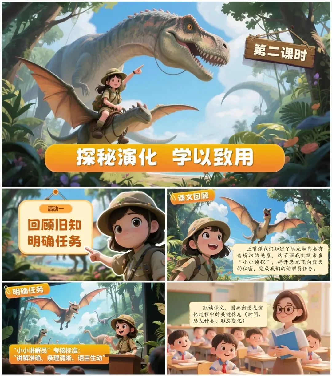 通过学习,完成 “恐龙演化成鸟类” 的讲解稿,成为合格的小小讲解员。