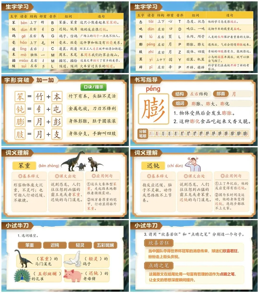 1.攻克生字词关卡,掌握讲解必备的 “语言工具”。