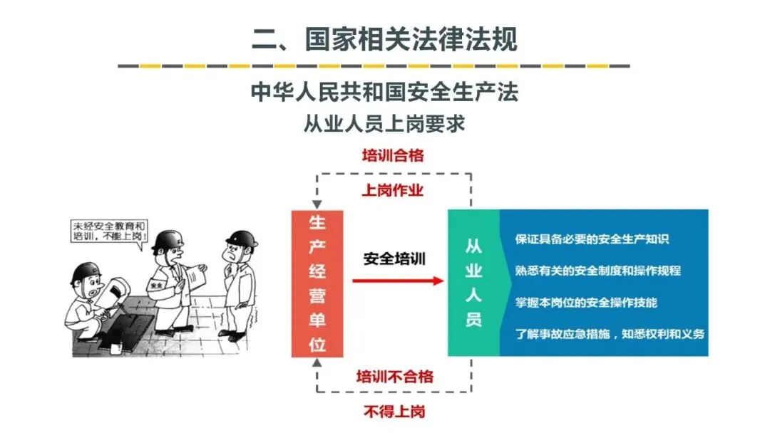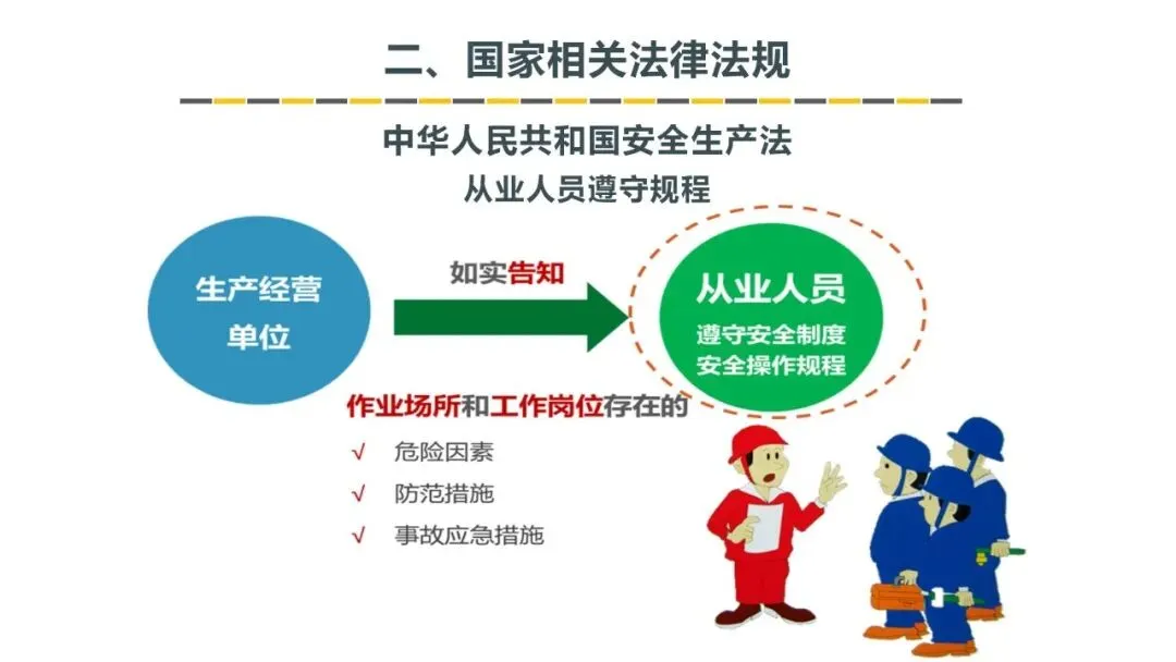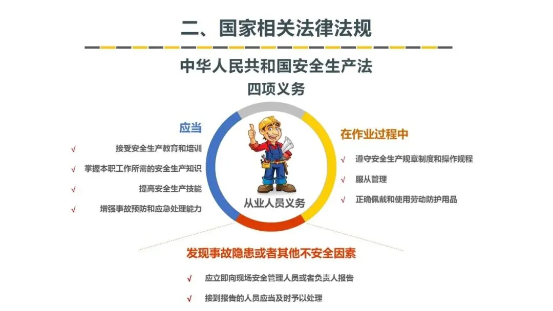 是培训的首要环节,需精准覆盖法律法规与行业标准。重点讲解《安全生产法》《消防法》等核心法律中与岗位相关的条款,结合行业规范解读设备操作红线、作业环境限值等硬性要求,让员工明确 “不可为” 的边界。同时,通过事故致因理论(如海因里希法则)的通俗化讲解,揭示 “人、机、环、管” 四要素的关联,建立 “隐患即事故” 的预防思维。