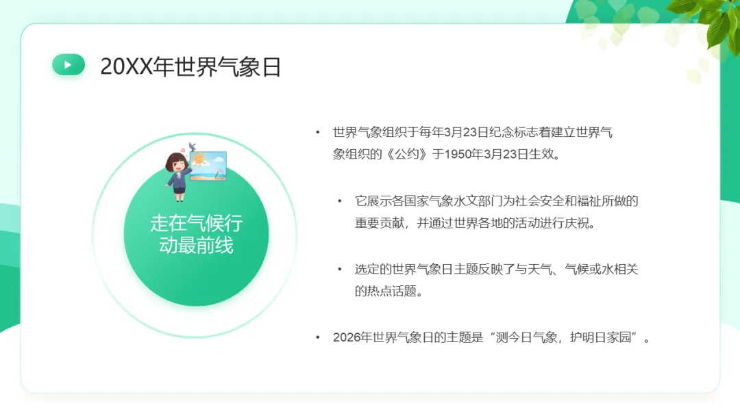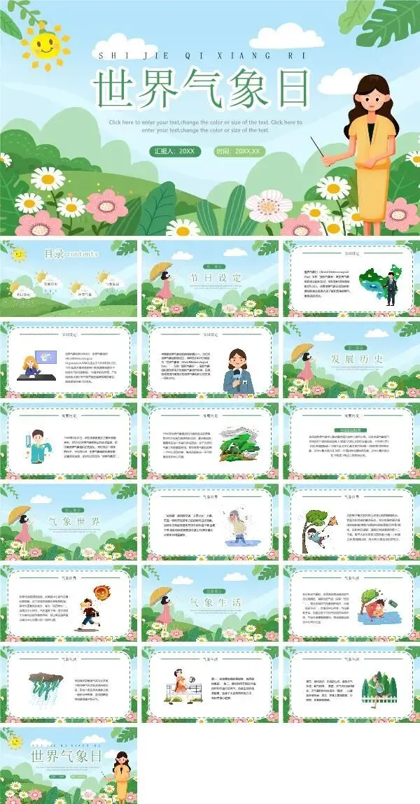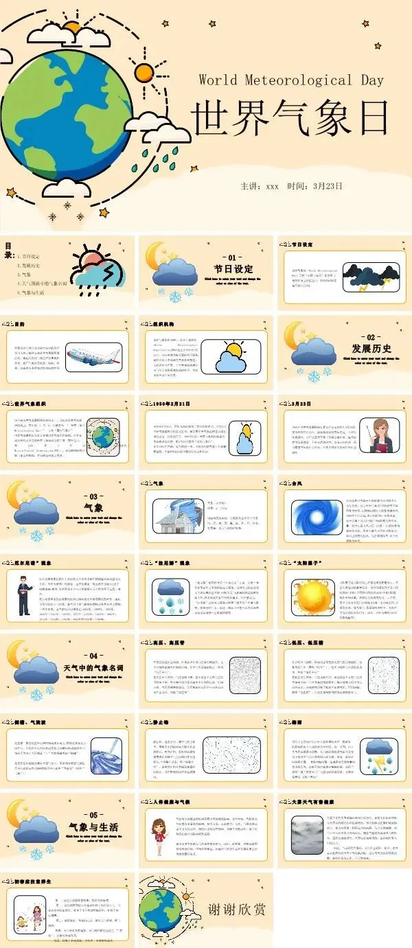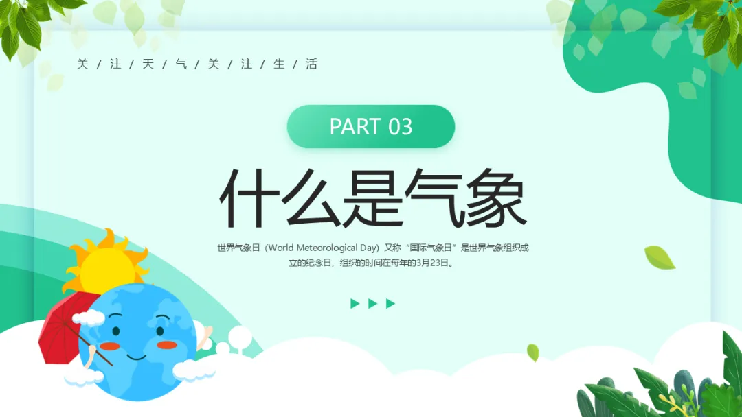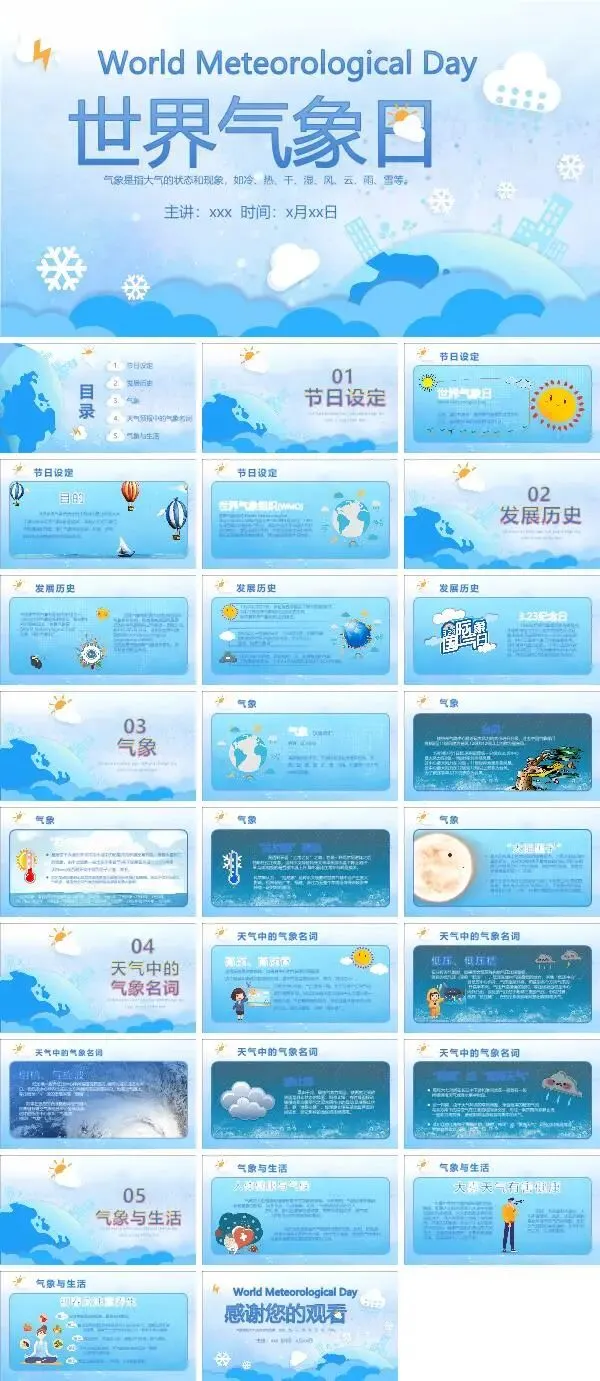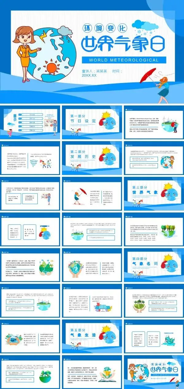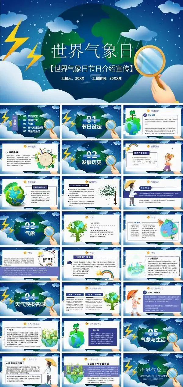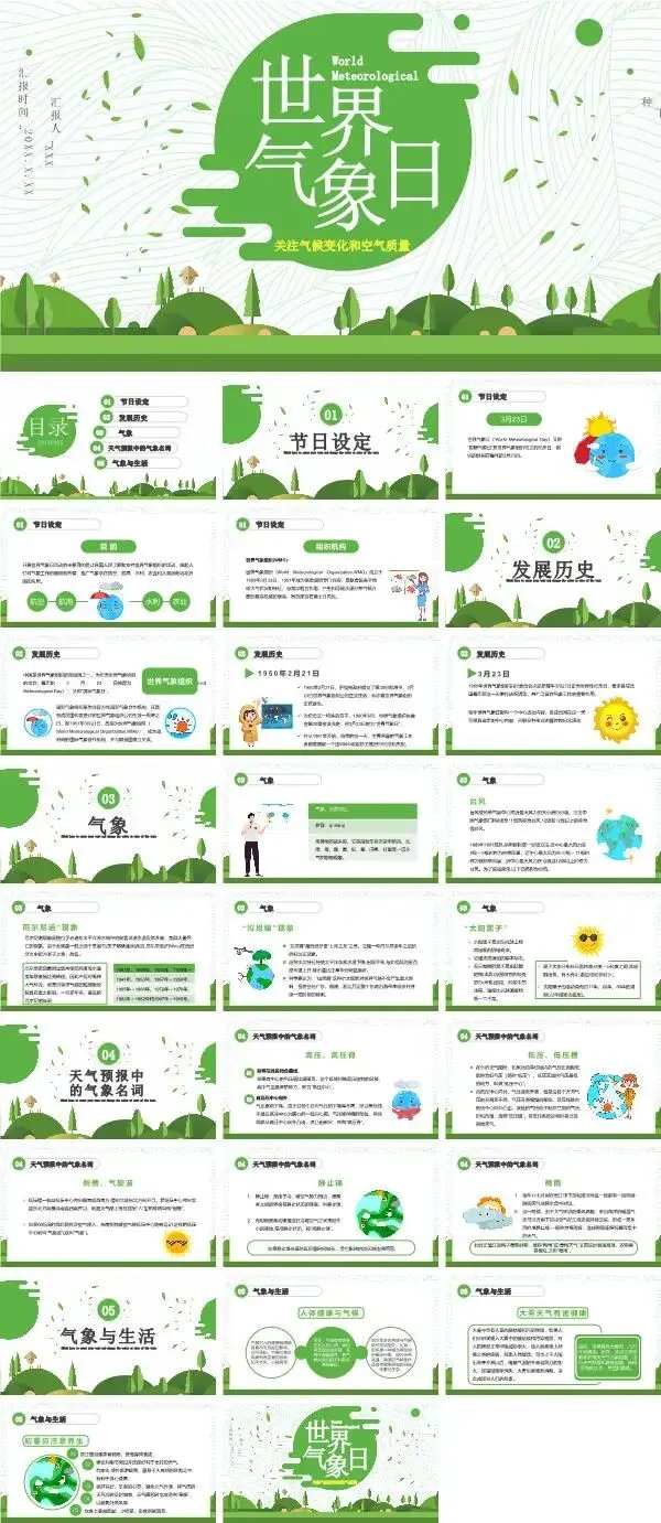 篇幅有限,以上仅为部分素材展示,更多世界气象日ppt课件,获取方式如下: