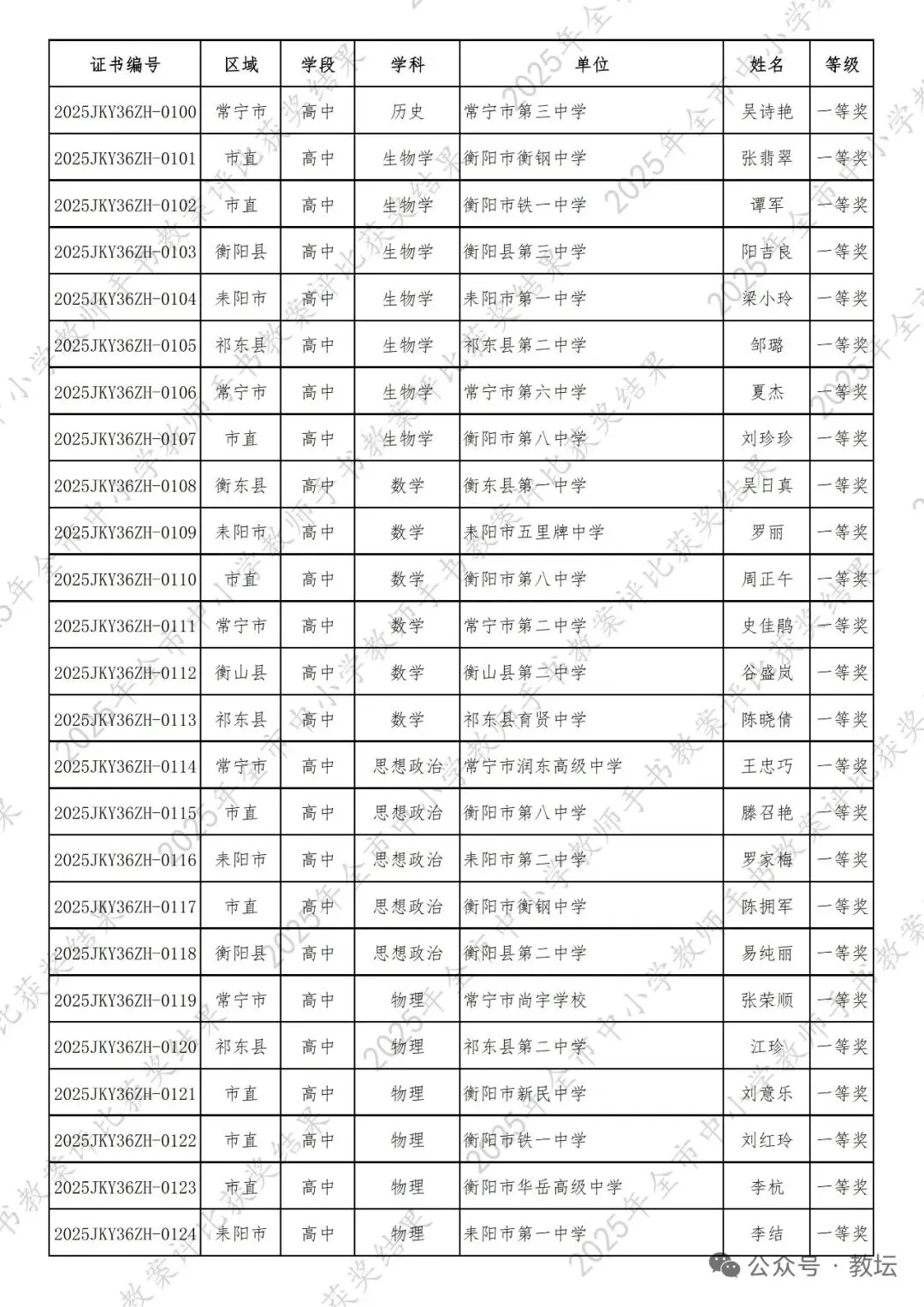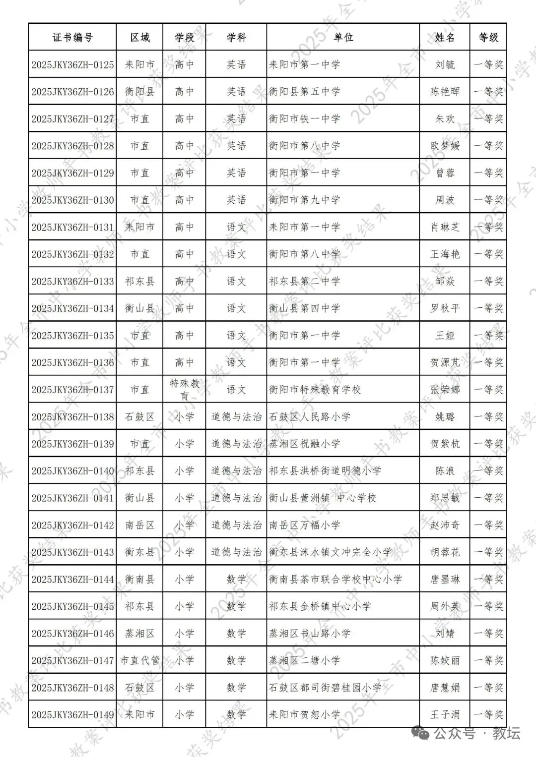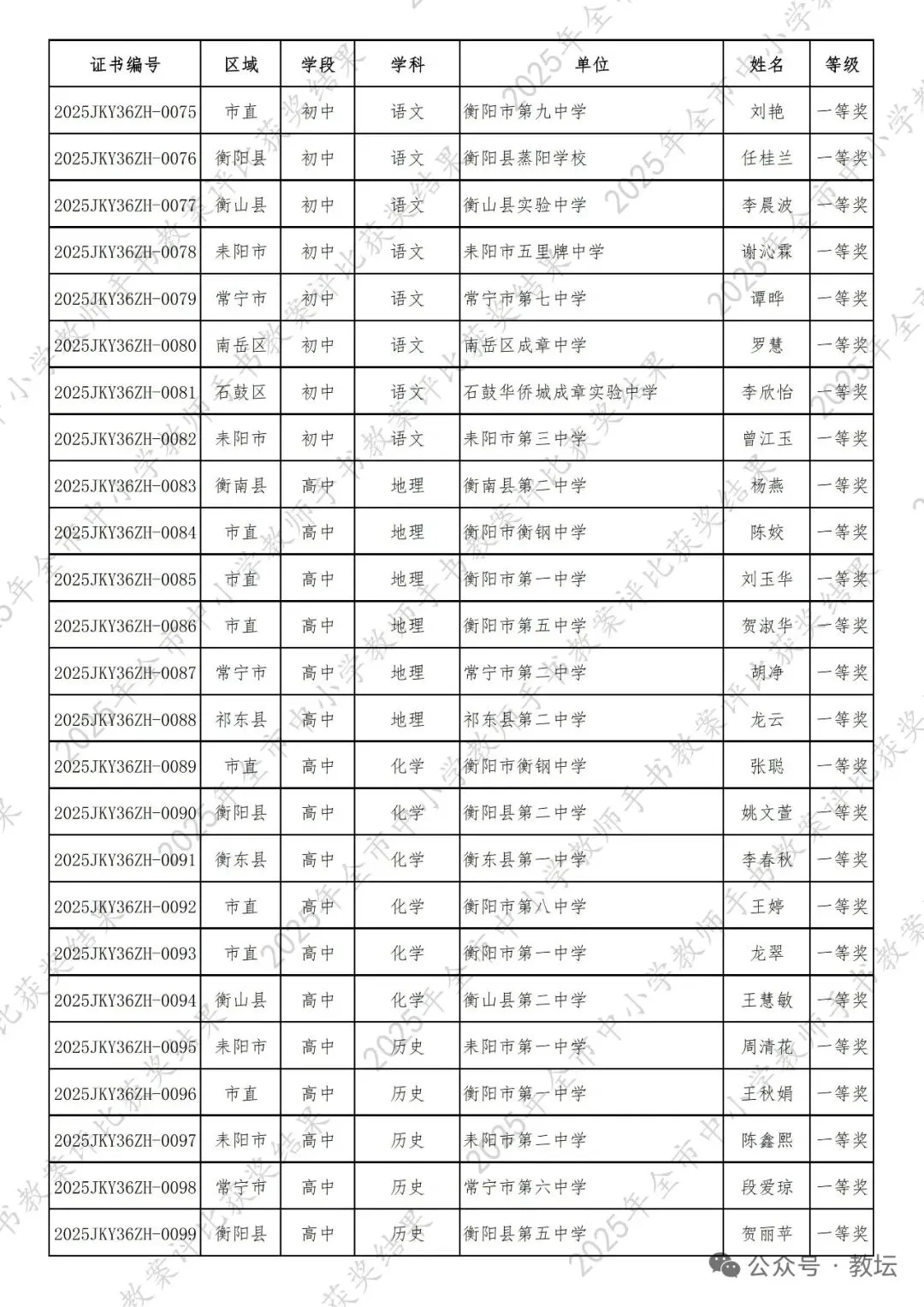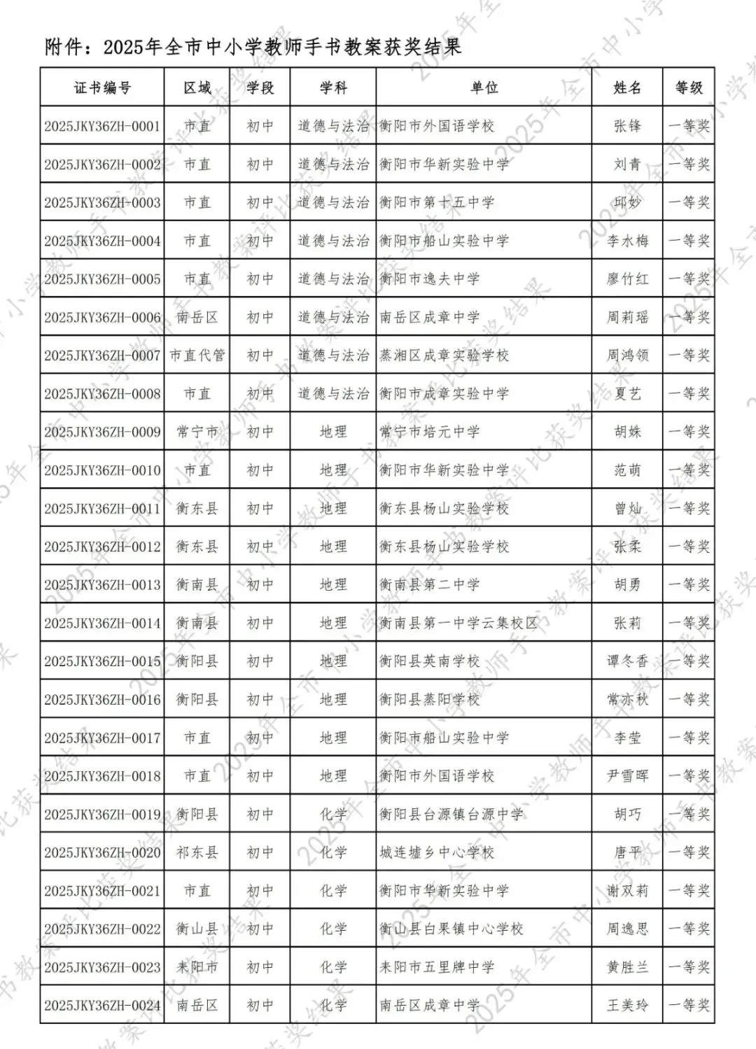 恭贺!衡阳市2025年中小学教师手书教案评比获奖