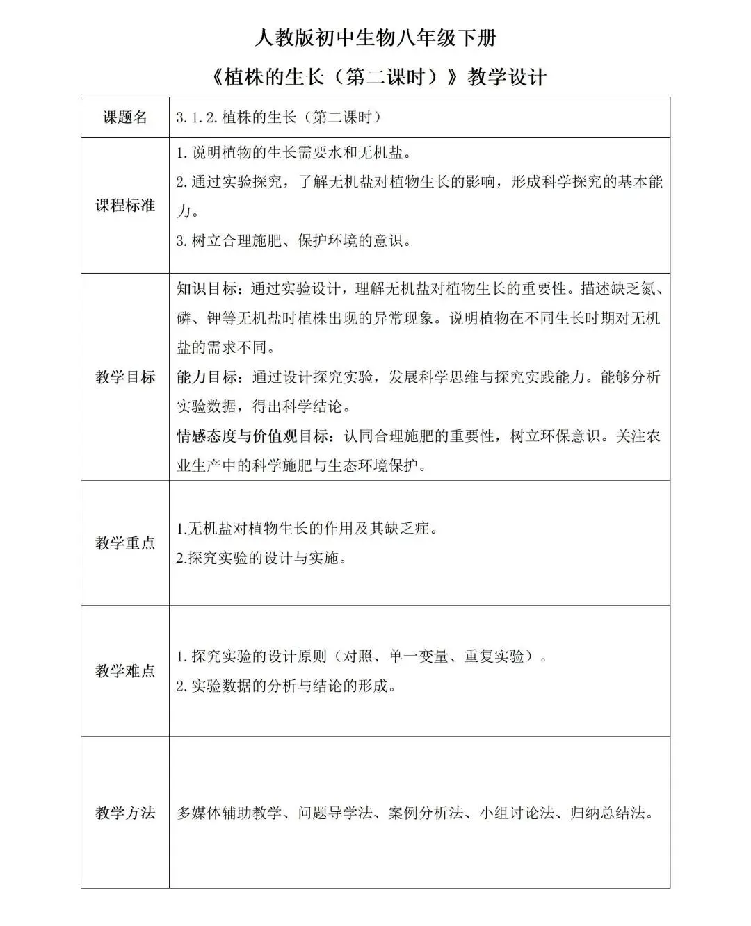 七年级生物课干货来啦~ 今天分享《植株的生长2》趣味教学方案,不枯燥不灌输,用实验探究 + 生活联动,让学生主动解锁知识点!