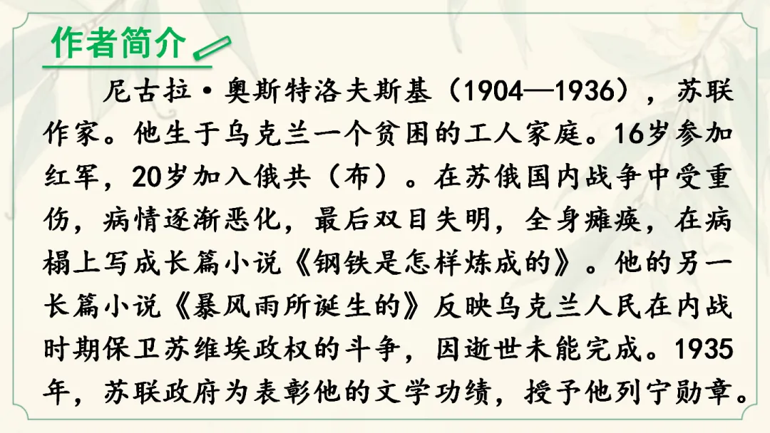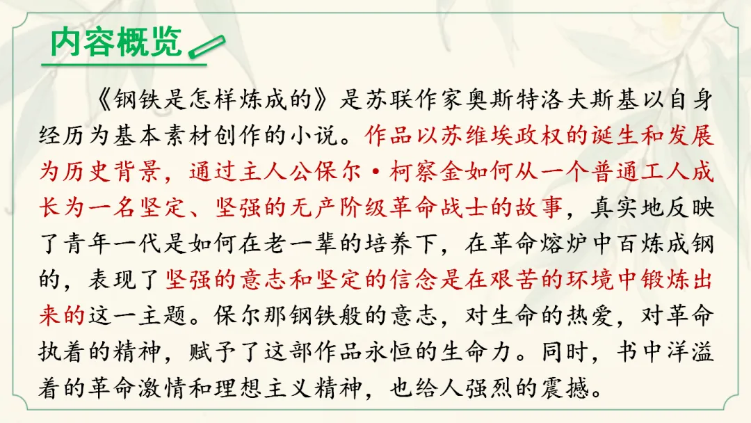七年级下名著课《钢铁是怎样炼成的》教学课件