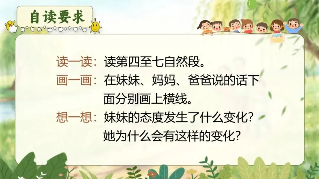 第2题:读句子,体会妹妹的变化,再说说她为什么会有这样的变化。