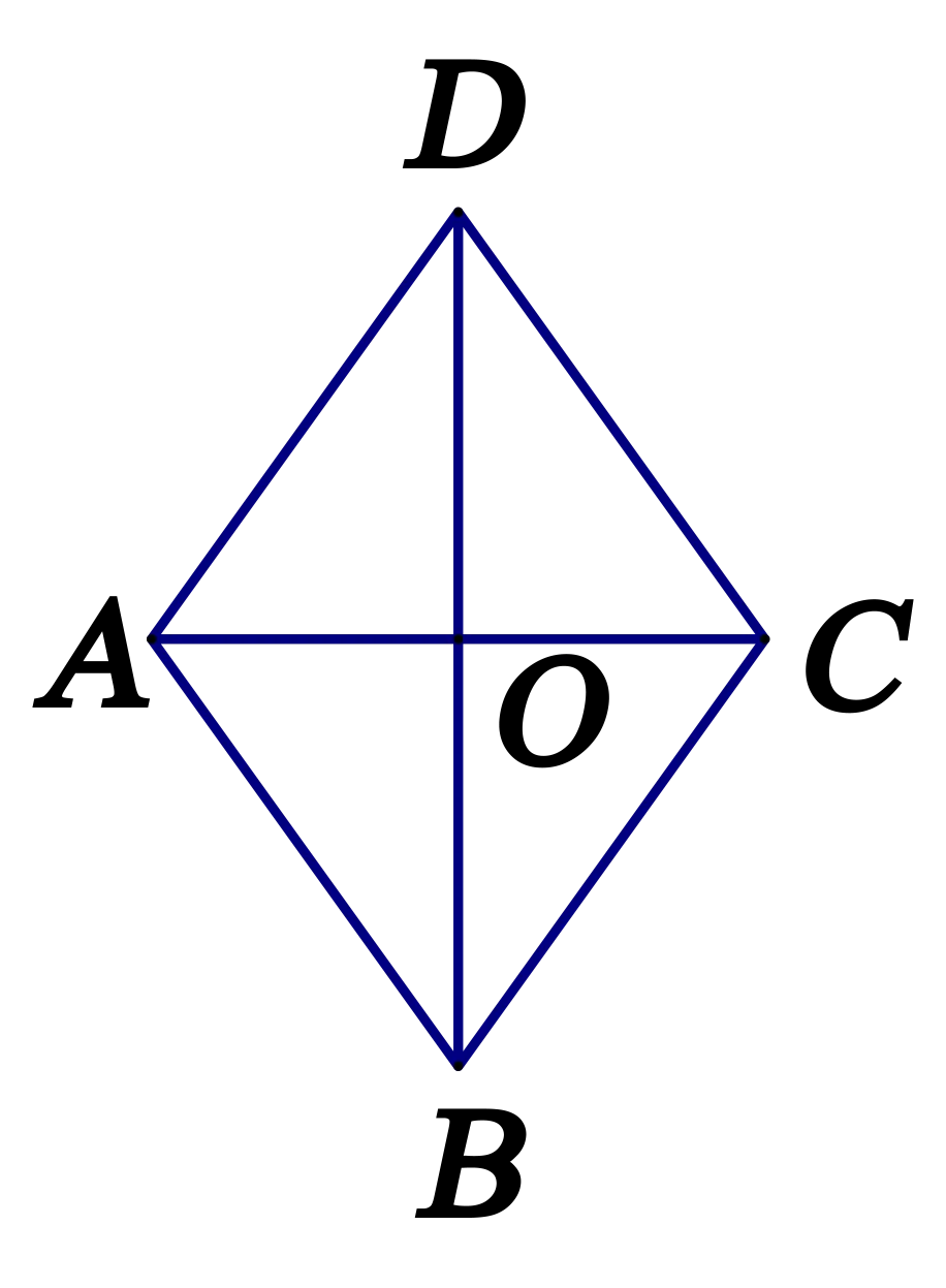 (1)点A的像是点C,点C的像是________,点D的像是________ ,点B的像是________; (2)边AD的像是边CD,边CD的像是________ ,边AB的像是________,边CB的像是________. 教师讲授:菱形ABCD关于直线DB轴对称的像与它自身重合 . 同理,菱形ABCD关于直线AC轴对称的像也与它自身重合. 【归纳】菱形的对称性: 1.菱形是中心对称图形,对角线的交点是它的对称中心. 2.菱形是轴对称图形,两条对角线所在直线都是它的对称轴. 探究五:菱形的面积 【议一议】如图,菱形ABCD的面积S与对角线AC,BD的长有什么关系?将你的想法与同学交流. 因为S菱形ABCD=S△ADC+S△ABC,AC ⊥ BD, 所以S菱形ABCD= AC⋅DO+ AC⋅BO = AC⋅(DO+BO) = AC⋅BD. 【归纳】菱形的面积等于两条对角线长度乘积的一半. |