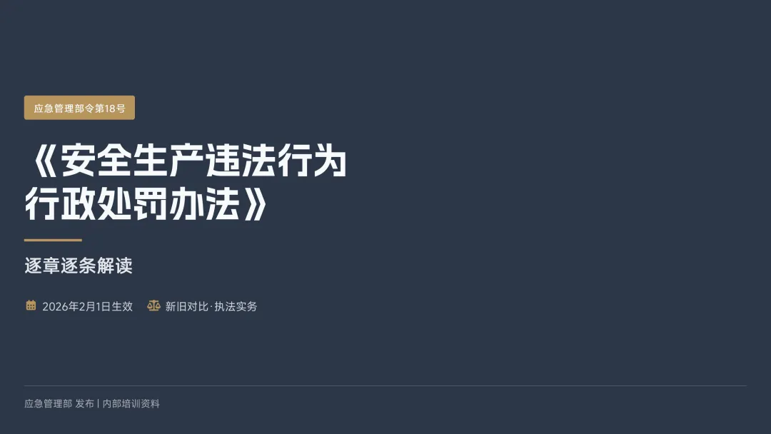 今天,「EHS安全智库」给大家分享的专题资料是应急部18号令《安全生产违法行为行政处罚办法》解读课件合集」,其中包括《安全生产违法行为行政处罚办法》解读课件、新旧对比、解读文档等资料,非常值得您的收藏