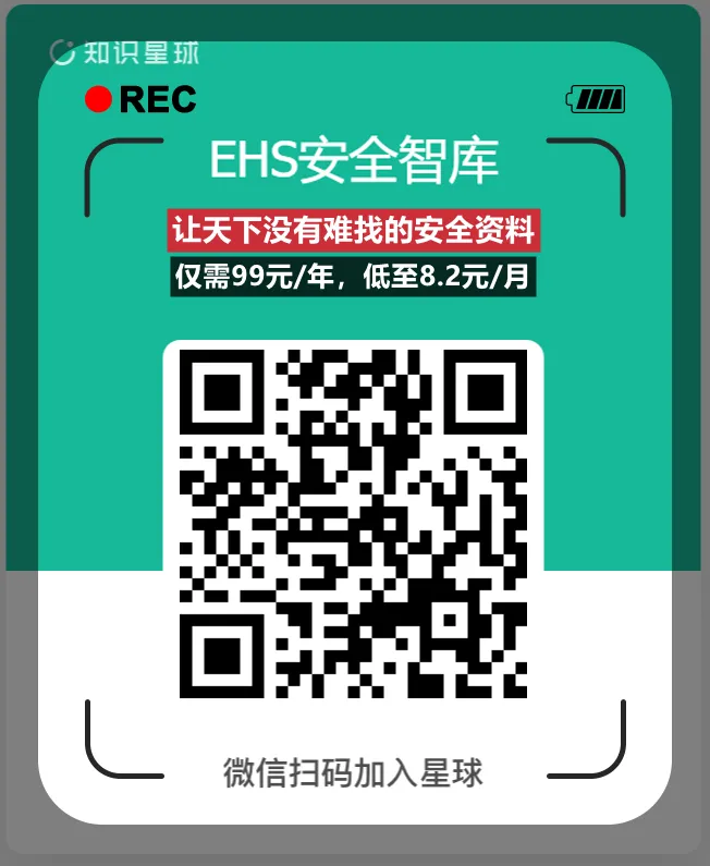 【EHS安全智库】致力于“让天下没有难找的安全资料”,原价199元/年,限时特惠价仅需99元/年,即刻开启10万+安全资料无限下载!同时享受24小时帮找资料服务!我们为安全人提供陪伴式职业成长支持,目前已有近7000人加入我们。