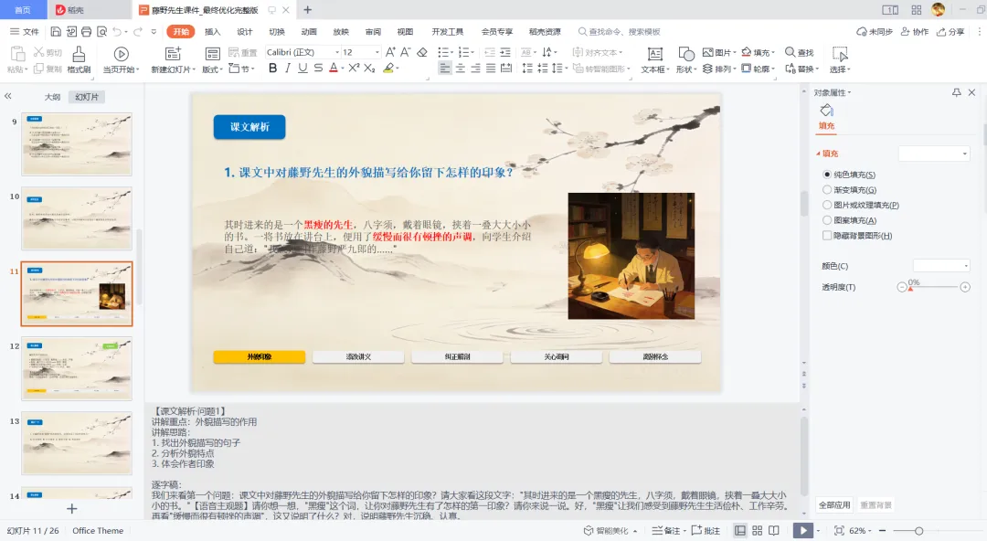 我不是语文老师,但我做出了专业的语文课件。 我不是设计师,但我生成了 13张风格统一的插图。 我不是编剧,但我写出了 26 页详细的逐字稿脚本。