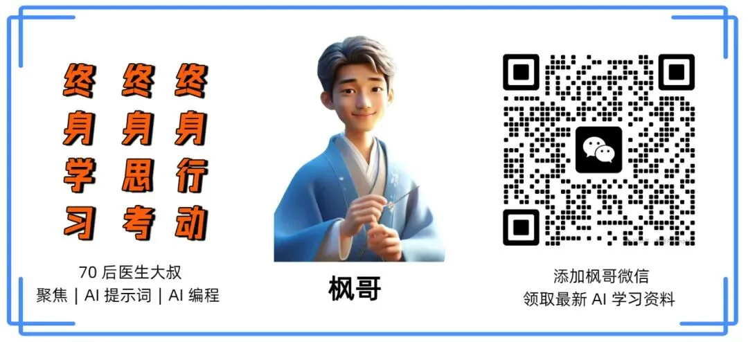 你好!我是你的老朋友枫哥,年过半百、坚持日更,热爱折腾 AI 的 70 后。